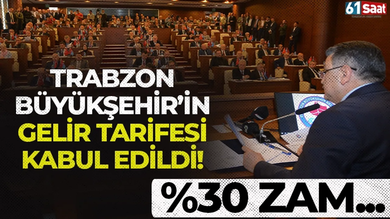 Trabzon Büyükşehir Belediyesi 2026 Yılı Gelir Tarifesi bugün Trabzon Büyükşehir Belediye Meclisinde görüşüldü. Buna göre gelir tarifesindeki kalemlere ortalama yüzde 30 oranında zam yapıldı.