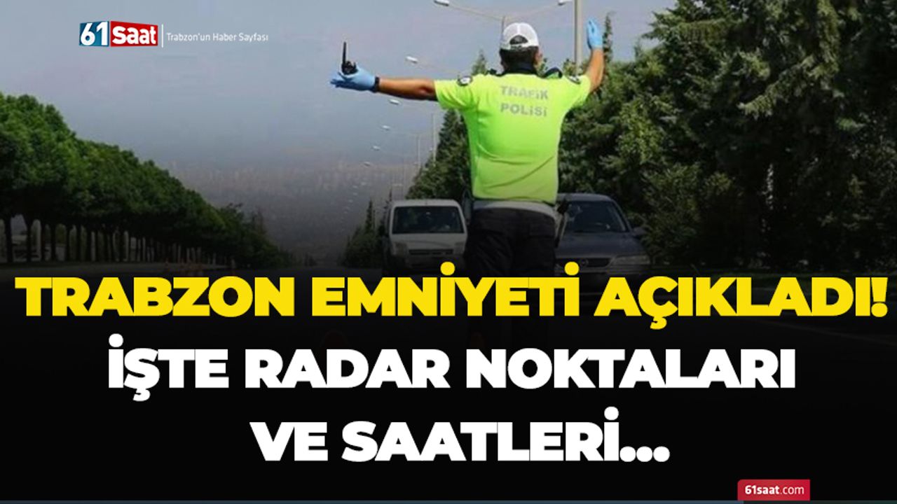Trabzon Emniyet Müdürlüğü, sosyal medya hesabında Trabzon'da yapılacak radar noktalarının belirtildiği bir gönderi yayınladı.