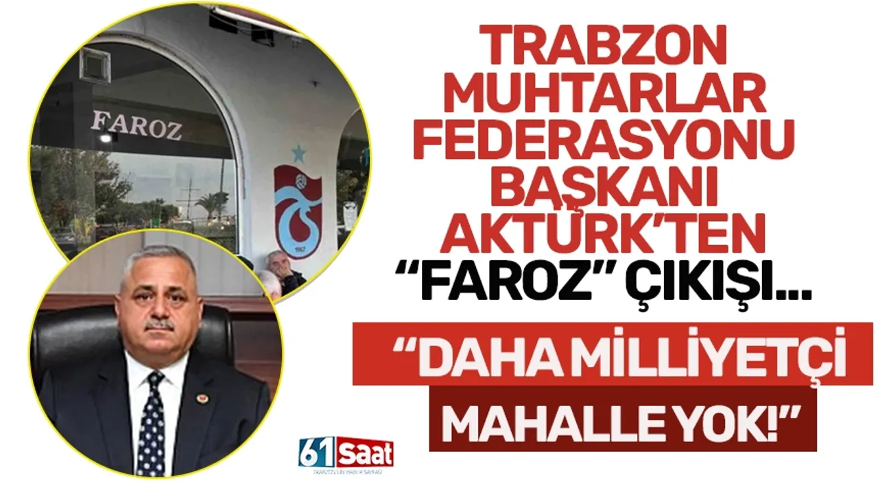 Trabzon Muhtarlar Federasyonu Başkanı Bekir Aktürk, Yalı Mahallesi'nin isminin referandumla "Faroz" olarak değiştirilmesi girişiminin ardından kapsamlı açıklamalarda bulundu. İsim değişikliğine karşı çıkanları eleştiren Aktürk, mahallenin Trabzon ve Türkiye için taşıdığı anlama dikkat çekti.