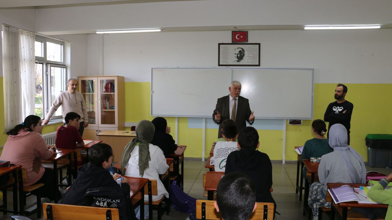 Okullarda idareciler ve öğretmenlerle bir araya gelen Kabahasanoğlu, daha sonra 8. sınıf öğrencileriyle sohbet gerçekleştirdi.