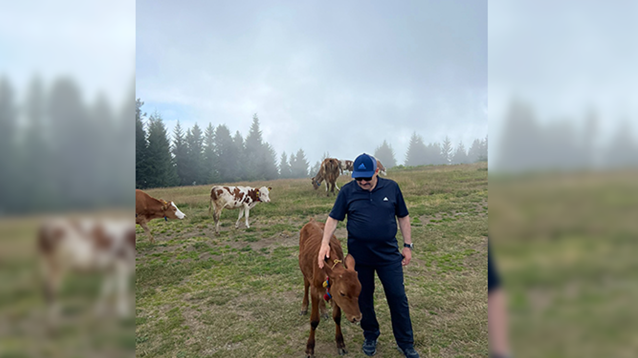 Vali'nin yaylada en mutlu anlarından biri, öğrencilik yıllarında Düzce'nin köylerinde baktığı ineklerle Trabzon yaylalarında yaşadığı anlardır. Bu anlar, onun yayla kültürüne olan sevgisini ve saygısını yansıtır. Valimizin fotoğrafta görülen bu sahnesi, tam anlamıyla bir yayla yaşantısının kanıtı gibi...