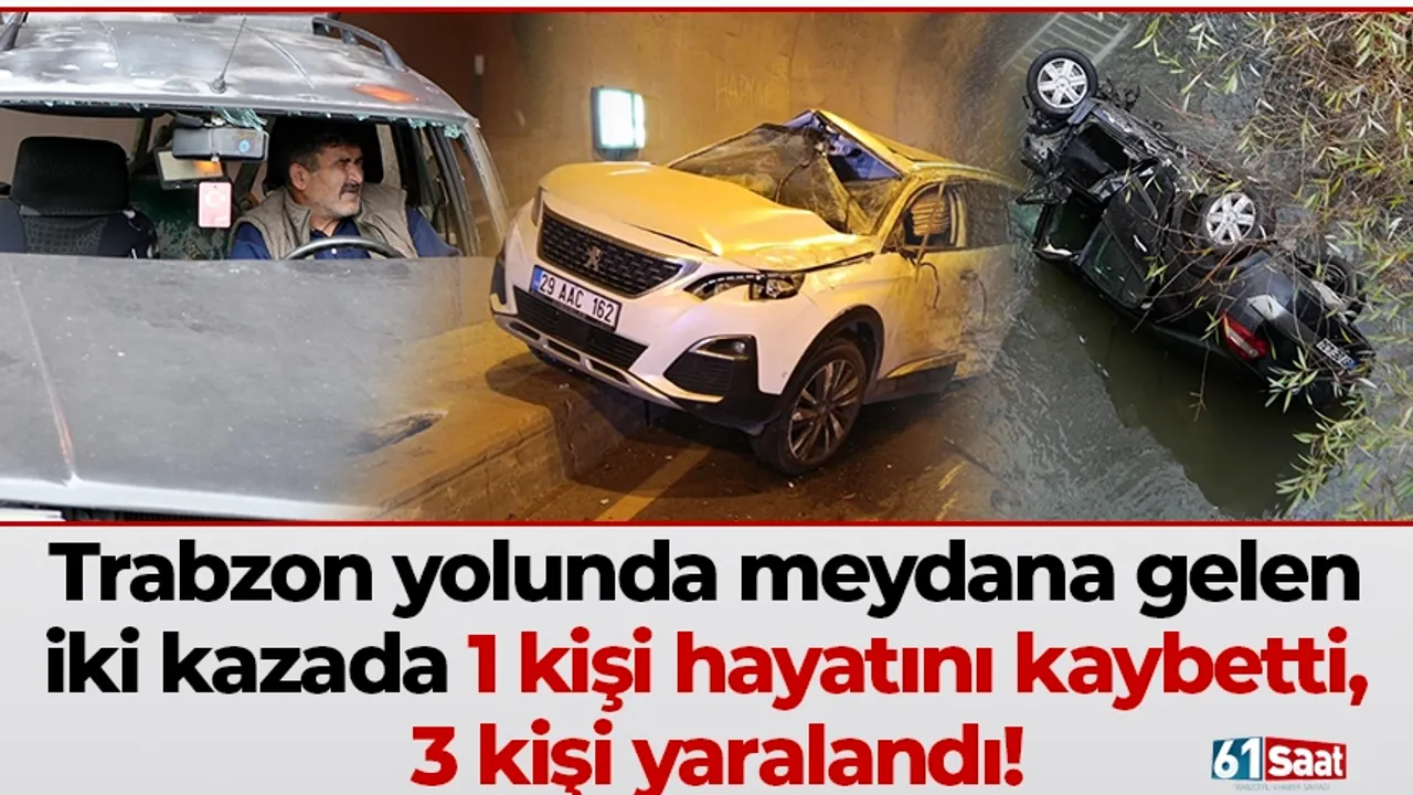 Gümüşhane’de aynı mevkide yarım saat arayla meydana gelen iki ayrı kazada 1 kişi hayatını kaybetti, 3 kişi yaralandı.