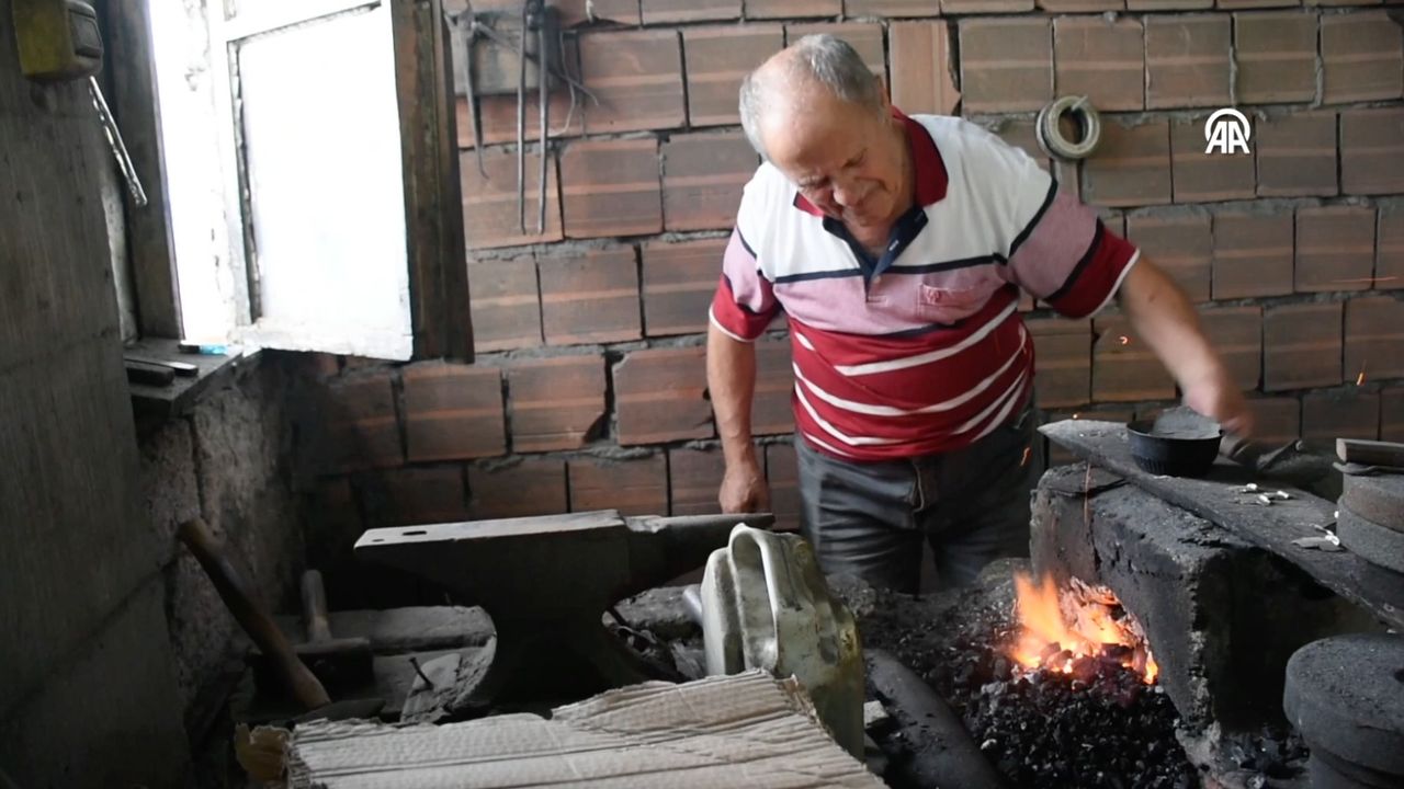 5 çocuk babası Alpaslan, Sürmene ilçesindeki evinin alt katında kurduğu atölyede körük ocağında bıçak ürettiğini ifade ederek, "Babam bu mesleği kayınbabasından öğrendi, ben de babamdan öğrendim. Onlar da Rum bir ustadan öğrenmiş." dedi.