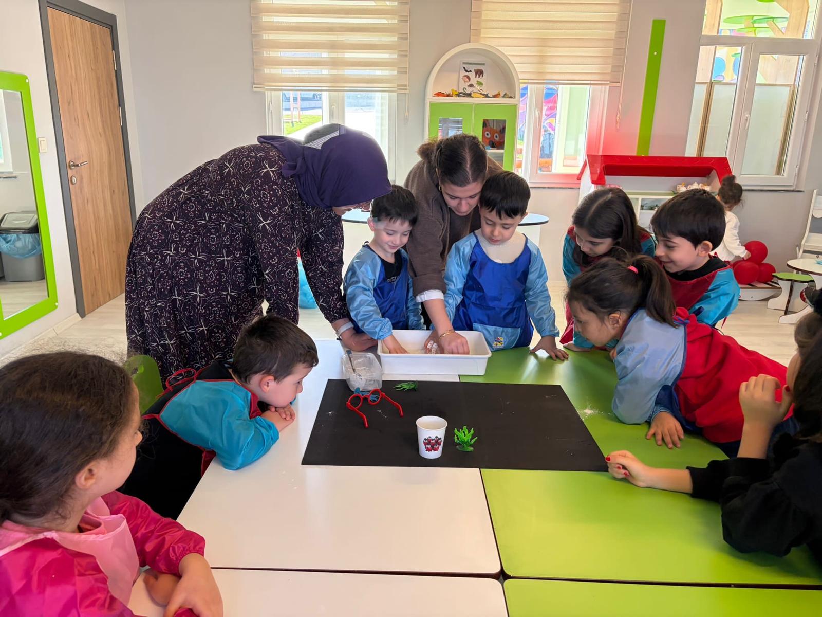 Çocukların hayal gücünü ve sosyal becerilerini geliştirmeye yönelik drama ve oyun temelli etkinliklerde geleneksel oyunlar ve yaratıcı çalışmalar yer aldı. “Bir Zamanlar Ben de Çocuktum”, “Eskiyi Yaşayalım”, “Bir Kış Masalı”, “Hepimiz Bir Bütünün En Değerli Parçalarıyız”, “Ateş Çemberi”, “İçinde mi Dışında mı”, “Tilki Tilki Saatin Kaç” ve “Elim Sende” oyunlarıyla çocuklar geçmişten günümüze uzanan oyun kültürünü deneyimledi. Müzik ve ritim çalışmalarıyla çocukların işitsel algıları desteklenirken eğlenceli ve katılımcı etkinlikler gerçekleştirildi. “Sesini Bul”, “Ritmini Bul”, “En Hızlı Kanguru” ve çeşitli ritim oyunlarıyla çocuklar müzikle hareket etmeyi ve birlikte üretmeyi öğrendi. Uygulamalı yemek atölyelerinde ise çocuklar tat alma, ayırt etme ve deney yapma süreçlerine katıldı. “Turşu Limonla mı Yapılır Sirkeyle mi?”, “Tat, Bil, Söyle Deneyi”, “Dev Çikolata Volkanı”, “Çikolata Şöleni”, “C Vitamini Şenliği”, “Bir Fincan Çay” ve “Hangisi Senin Kurabiyen” etkinlikleriyle mutfak kültürünü eğlenceli deneyimlerle tanıdı. El becerilerini ve yaratıcılığı geliştirmeye yönelik atölyelerde ise çocuklar kendi ürünlerini tasarladı. “Oyuncağını Tasarla”, “Baykuşunu Tasarla”, “Şeklini Seç, Rengini Tasarla”, “Taştan Sanata”, “Yapı Tasarlama”, “Doğadan Çerçeveye”, “Doğadan Resme”, “Duygumu Renklendiriyorum”, “Mandalinam Kaç Parça”, “Kintsugi” ve “Hayallere Açılan Kapı Anahtarlığı” etkinlikleriyle sanat ve tasarım süreçlerini birebir deneyimledi.