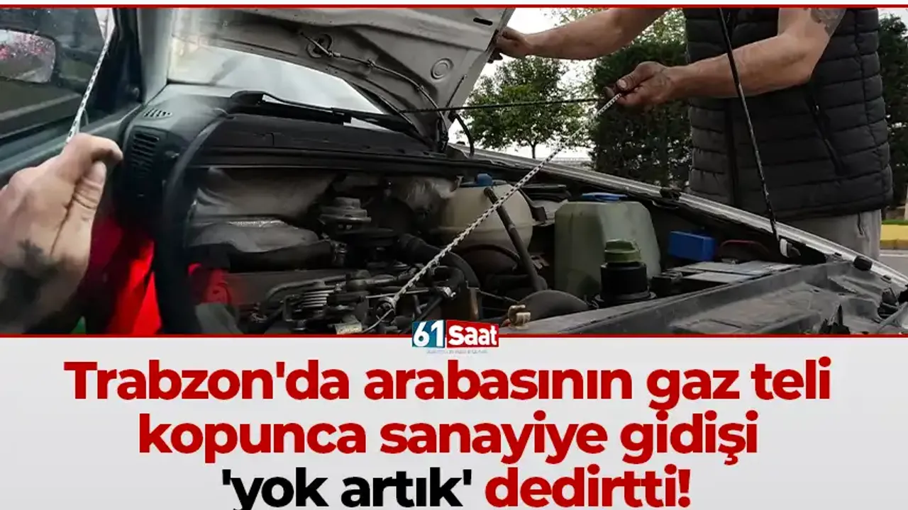 Trabzon'da oto lastik tamircisi Devran Pekin’in (38) otomobilinin gaz pedalı yolda ilerlerken arızalandı. Motor bölümündeki gaz koluna ip bağlayan Pekin, ipi çekip otomobile gaz vererek yaklaşık 1,5 kilometre uzaklıktaki sanayiye ulaştı. O anların görüntülerini sosyal medyadan paylaşan Devran Pekin, “Aracımızın gaz teli koptu, biz de manuel gaz yapmak zorunda kaldık” dedi.