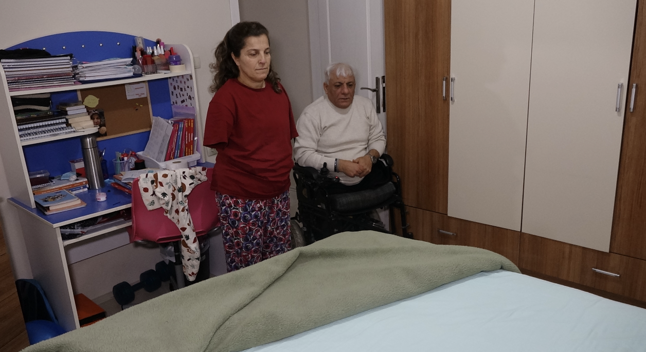Hikmet Polat, tek mücadelesinin kızı için olduğunu söyleyerek, “Hayatımı sürdürürken eşim ile tanıştım. O dönem de rahatsızlıklarım vardı. Şeker ve ‘buerger hastalığı’ nedeniyle bacaklarım kesildi ve engelli durumuna düştüm. Eşimle tanıştıktan sonra durumumu ona anlattım. O da bana kendi durumunu anlattı. Sonrasında anlaşarak evliliğe başvurduk. Eşim de engelli, onun kolları benim ayaklarım yok. Ben ona, ‘sen benim bacaklarım, ben de senin kollarınım’ dedim. 2010’da evlendik ve bir kızımız oldu. Hayattaki tek mücadelemiz kızımızın okuması ve kendi hayatını kurtarabilmesidir. Geçimimiz zor oluyor ve sıkıntı çekiyoruz. Ayaklarım olmadığı için çalışamıyorum” ifadelerini kullandı.