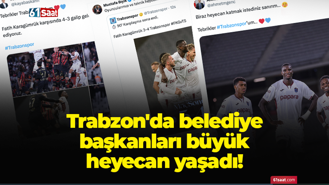 Teknik Direktör Fatih Tekke yönetimindeki Trabzonspor deplasmanda konuk olduğu Fatih Karagümrük'ü 90.dakikasında 4-1 önde girdiği karşılaşmada 4-3 mağlup etmeyi başardı. Karşılaşmanın son anları nefes keserken Trabzon'da belediye başkanları da heyecan dolu anlar yaşadı.