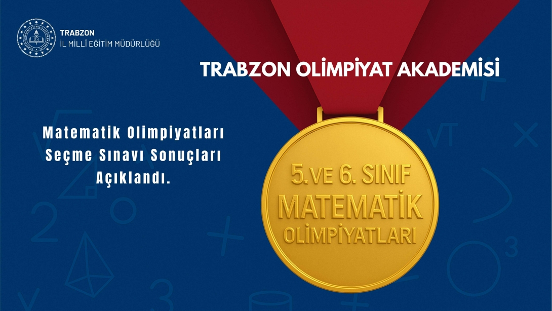 Trabzon genelindeki tüm okullarda matematik alanında yetenekli öğrencilerin belirlenmesi amacıyla Trabzon İl Millî Eğitim Müdürlüğü tarafından 5 ve 6. sınıf seviyesindeki öğrencilere yönelik gerçekleştirilen Bilim Olimpiyatları Akademisi Matematik Seçme Sınavı sonuçları açıklandı.