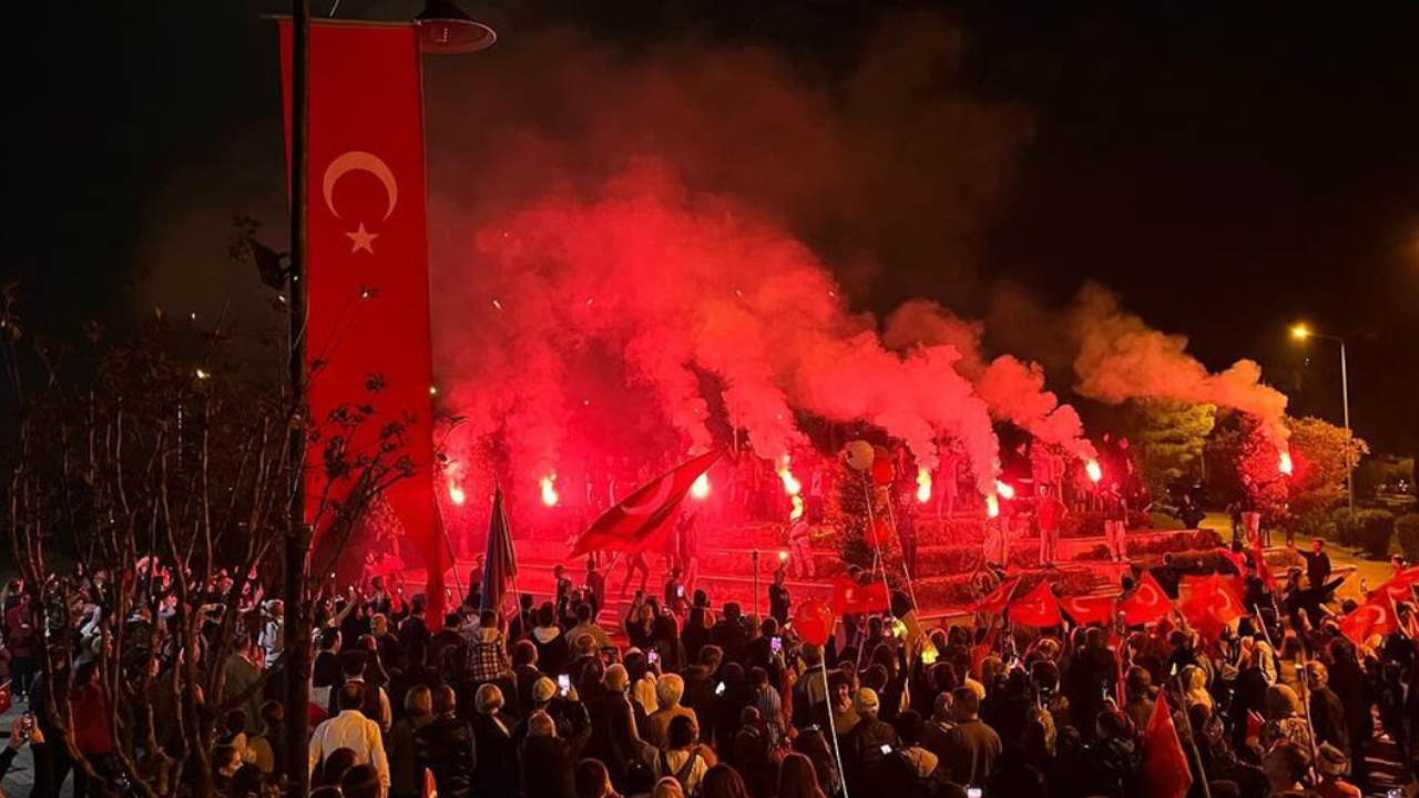 Bando takımı ve 100 metre uzunluğundaki Türk bayrağı ile Beşikdüzü sokaklarında yürüyüş yapan halk Beşikdüzülüler Derneği'nin hazırladığı meşale ve havaifişek gösterisi ile yürüyüşüne son verdi.
