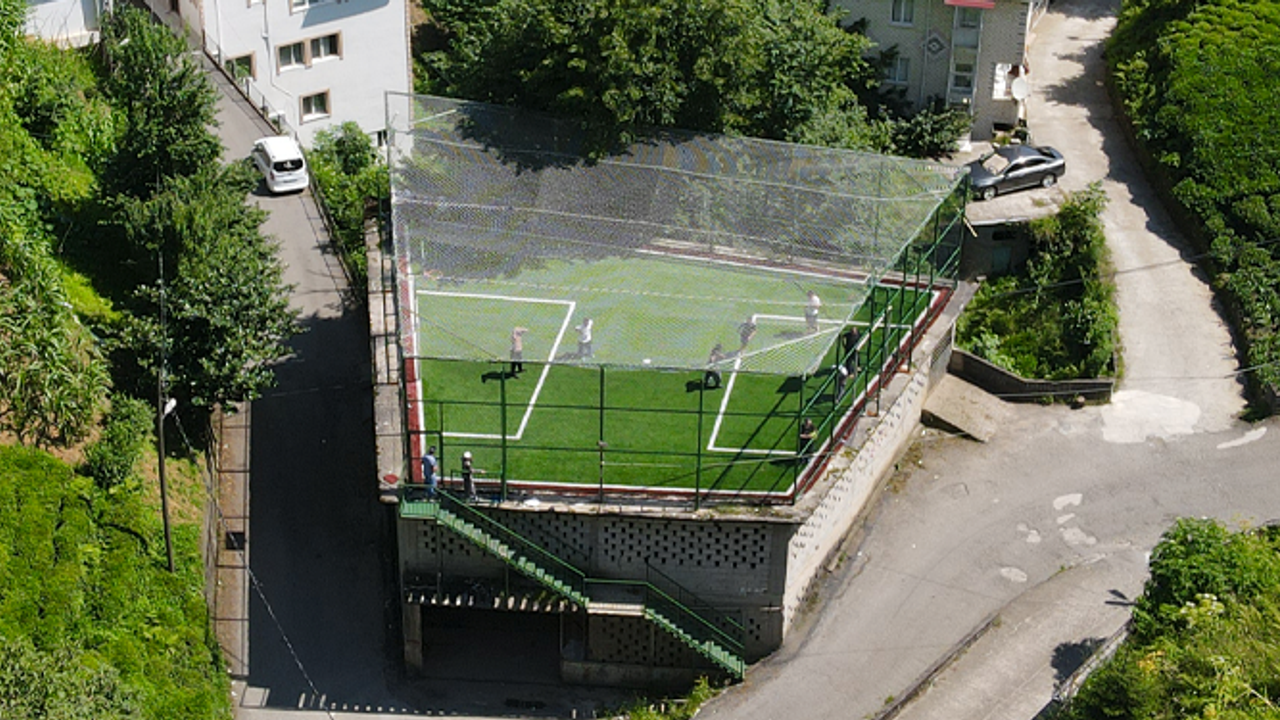 Mahalle gençleri ve Kur'an kursunda eğitim alan öğrencilerin faydalanması amacıyla yöre halkının da desteğiyle yaklaşık bir yıl önce yaptırılan halı saha, yamuk şekliyle dikkati çekiyor.
