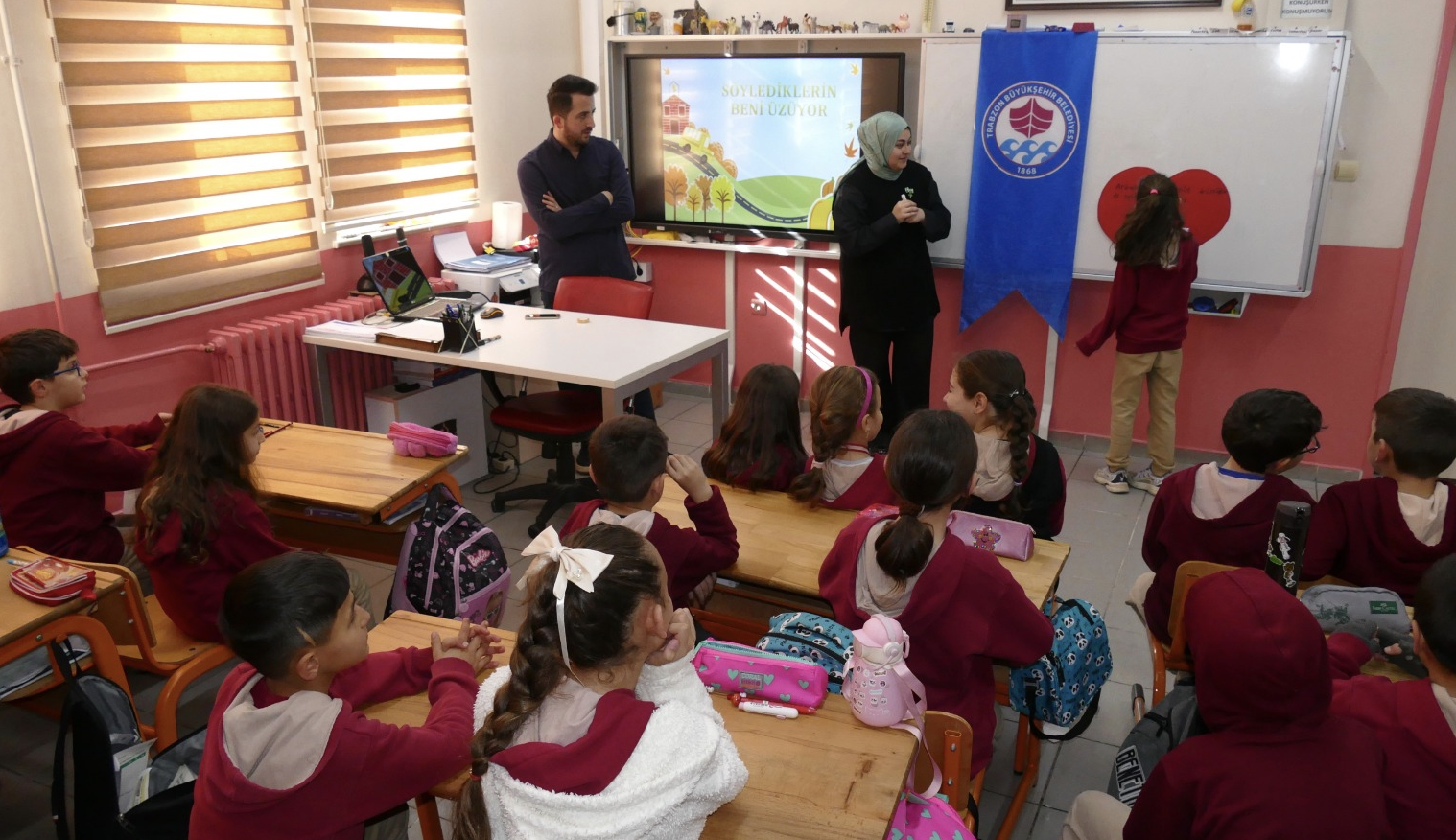 Trabzon Büyükşehir Belediyesi, çocukların güvenli ve sağlıklı bir eğitim ortamında gelişimlerini desteklemek amacıyla akran zorbalığına karşı farkındalık eğitimlerini kararlılıkla sürdürüyor. Büyükşehir Belediyesi Sosyal Hizmetler Dairesi Başkanlığı ile Ortahisar İlçe Milli Eğitim Müdürlüğü arasında imzalanan protokol çerçevesinde yürütülen çalışmalar kapsamında, 2025 yılı içerisinde bin 518 öğrenciye akran zorbalığına yönelik bilinçlendirme eğitimi verilmişti. Eğitim programlarına, 2026 yılının başlangıcıyla birlikte Ortahisar Kireçhane İlkokulu’nda devam edildi. Eğitimler, köy okullarında belirlenen takvim doğrultusunda sürdürülüyor.