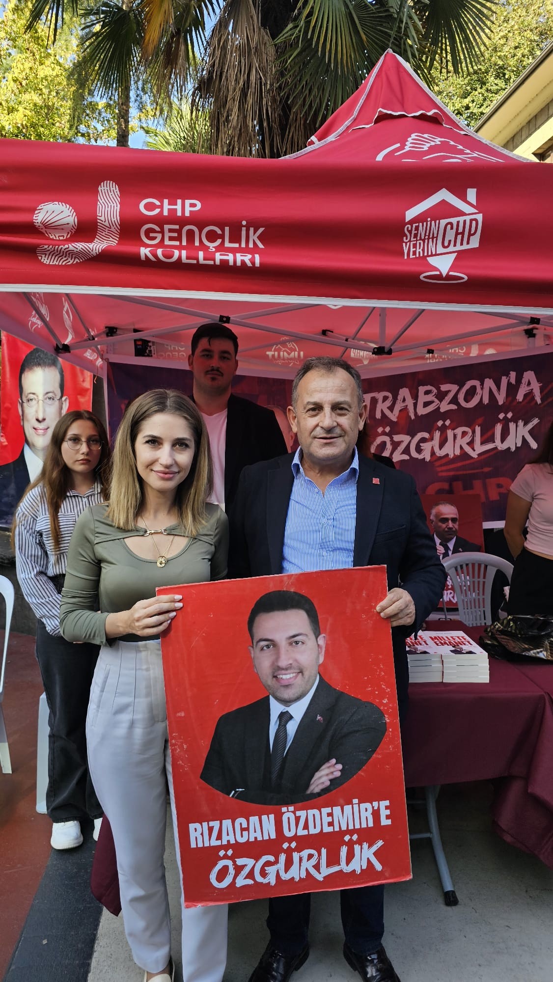 CHP Trabzon İl Başkanı Mustafa Bak, tutuklanan Büyükçekmece Belediye Başkan Yardımcısı Rızacan Özdemir’in eşi Özge Özdemir'in Maraş Caddesi’ndeki CHP standına yaptığı ziyareti duyurdu.