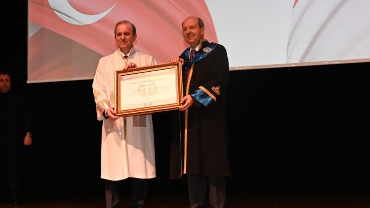Konferansın sonunda KKTC Cumhurbaşkanı Ersin TATAR’a, Rektör Prof. Dr. Hamdullah ÇUVALCI tarafından "Fahri Doktora (Onur Doktoru)" beratı ve yağlı boya portresi takdim edildi. Program, hatıra fotoğrafı çekiminin ardından sona erdi.