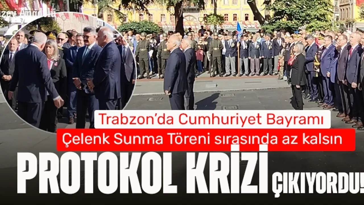 Bugün Meydan Parkında yapılan Çelenk Sunma töreni için alınan düzende Trabzon Protokolü arka tarafta dururken, Atatürk Heykeline Çelenk Koyacak olan Trabzon Valisi Aziz Yıldırım ve Trabzon Büyükşehir Belediye Başkanı Murat Zorluoğlu, ön sırada yer aldı.