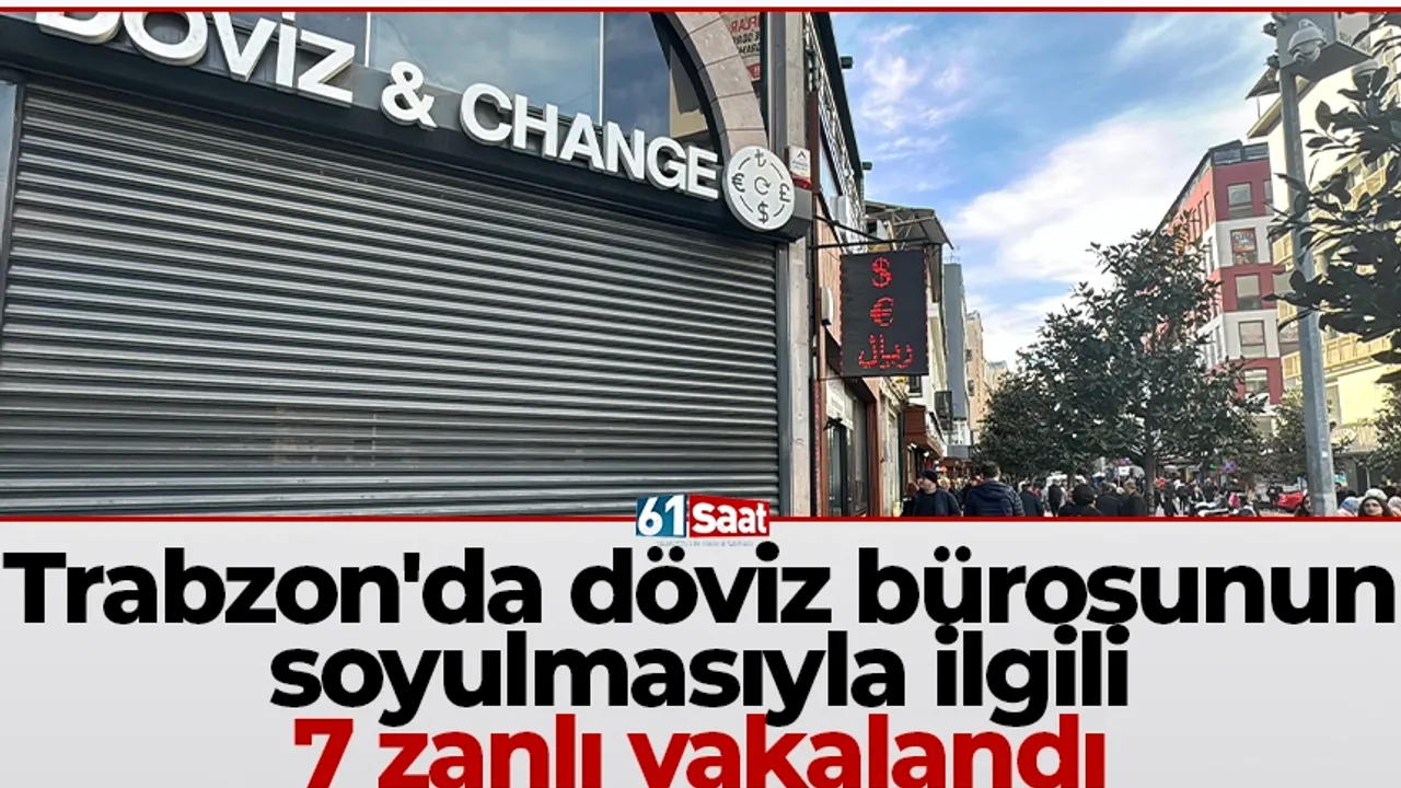 Trabzon Emniyet Müdürlüğü Hırsızlık Büro Amirliği ekipleri, Kemerkaya Mahallesi Atatürk Alanı'ndaki döviz bürosunun 7 Aralık gece saatlerinde soyulmasıyla ilgili soruşturma kapsamında 7 şüpheliyi yakaladı.