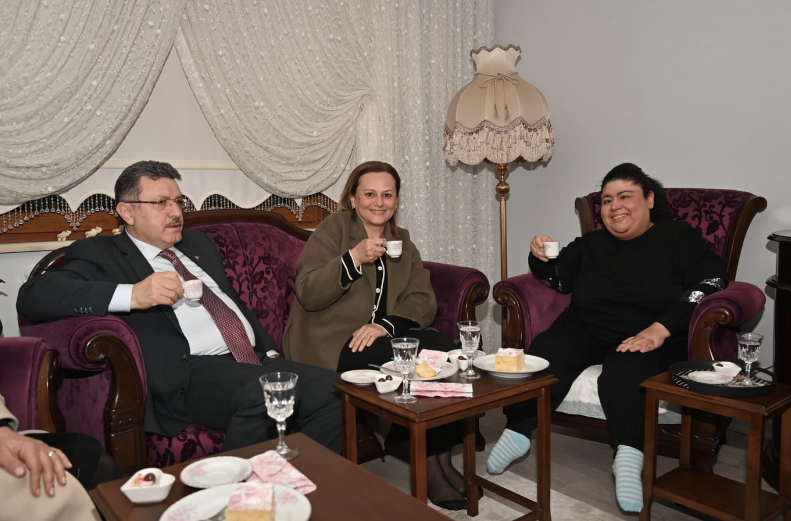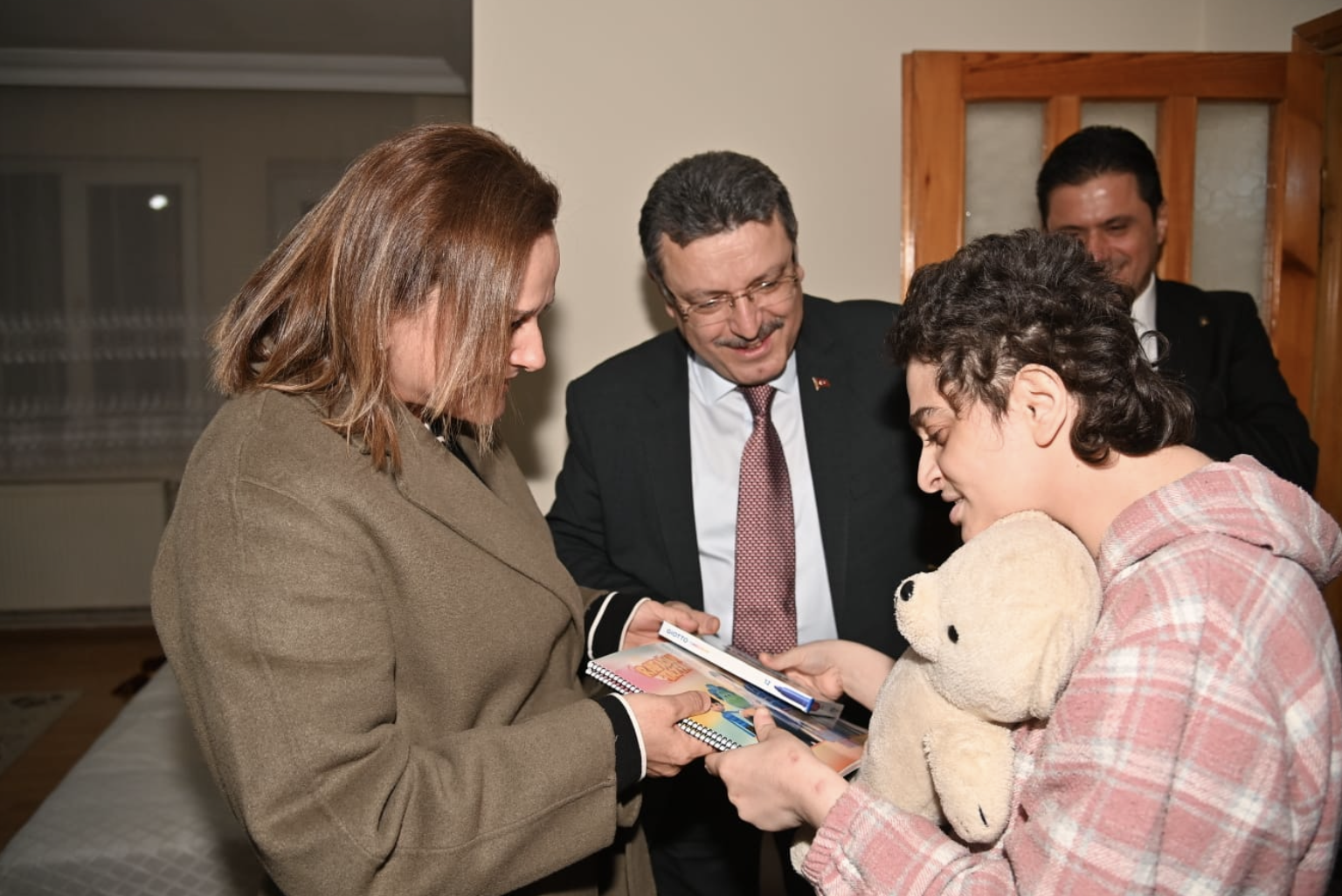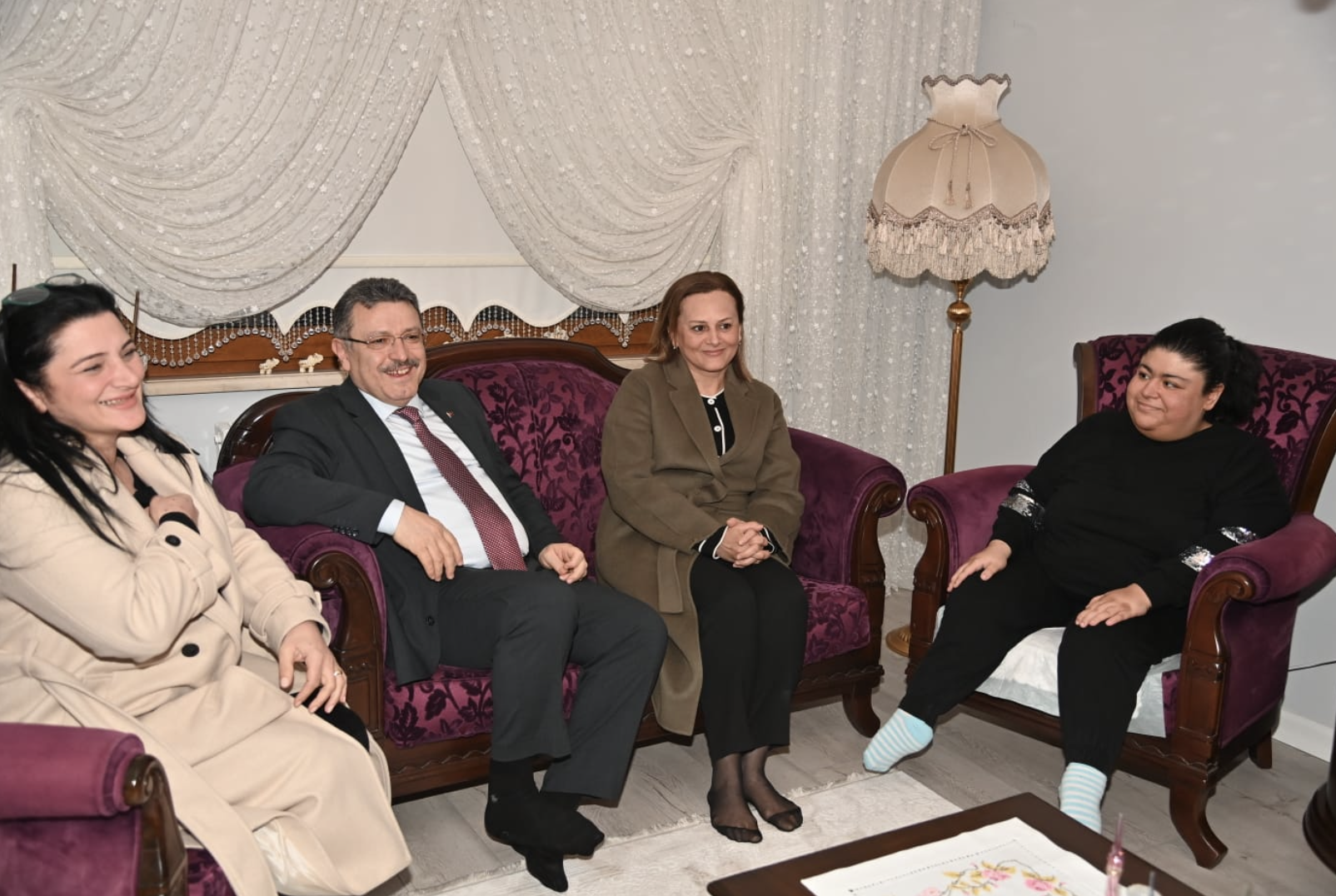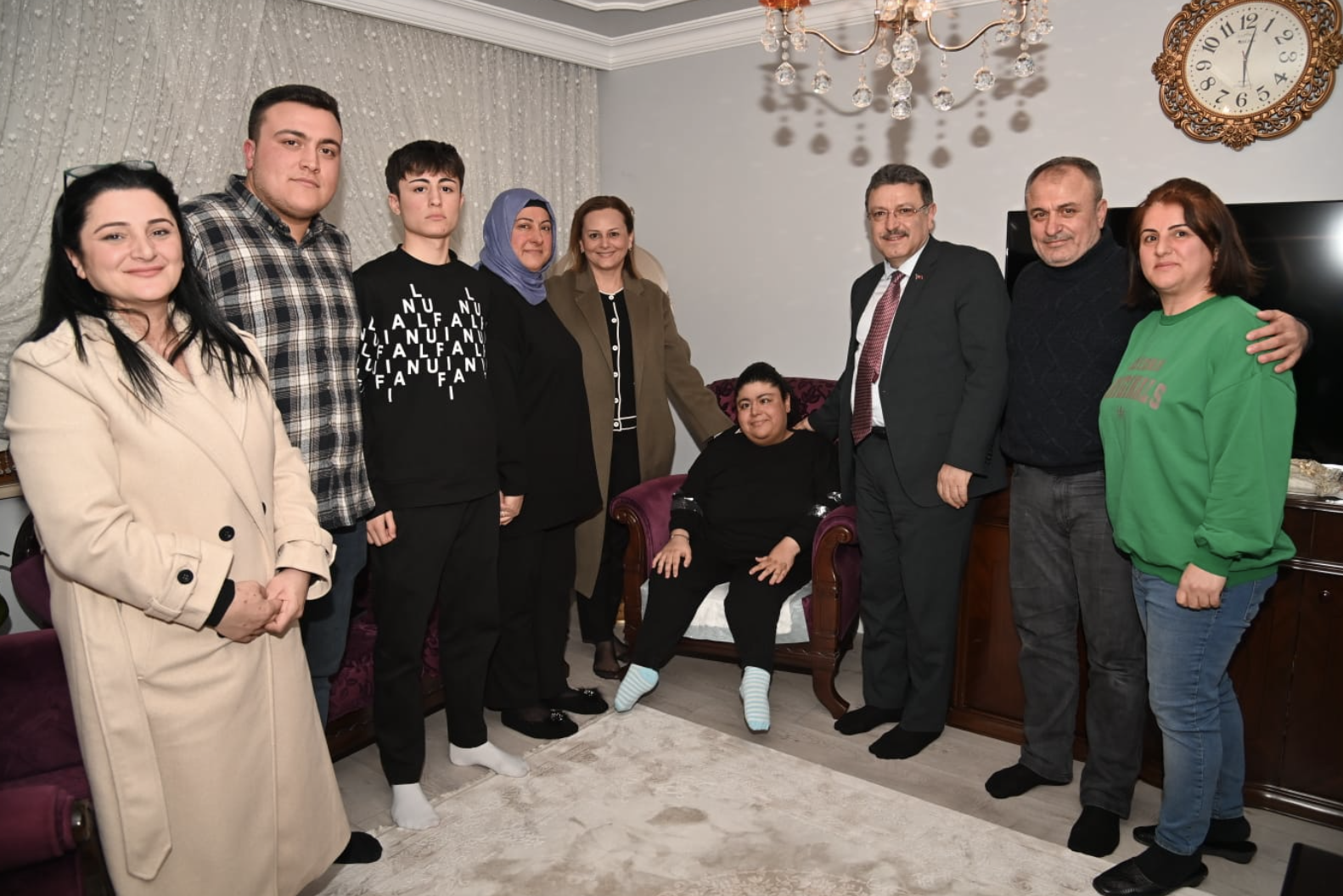 Trabzon Büyükşehir Belediye Başkanı Ahmet Metin Genç ve eşi Arzu Genç, özel gereksinimli bireyler ve ailelerine ziyaretlerde bulundu. Daha önce kendisine kahve sözü veren yüzde 95 bedensel engelli 26 yaşındaki Sena Sağır’ın davetini kırmayarak evine misafir olan Başkan Genç, “Engelsiz Taksi” hizmetinin artırılacağı müjdesini verdi. Sağır’ın babası, “Ziyaretinizden dolayı çok onurlandık, bizi gerçekten mutlu ettiniz” diyerek memnuniyetini dile getirdi. Başkan Genç, özel bireylerin yanında olmaya devam edeceğini belirterek çeşitli hediyeler takdim etti ve Sena Sağır’ı belediyede ağırlama sözü verdi. Başkan Genç, ziyaretlerinin ikinci durağında Vildan, Nagihan, Mihriban ve Elif Tarım kardeşlerin ailesini ziyaret etti. Aileye destek olmayı sürdüreceklerini ifade eden Başkan Genç, engelli çocukları belirli aralıklarla gezdirme sözü verdi.
