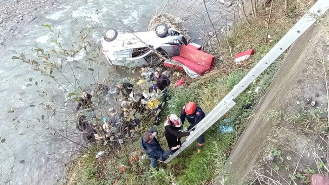 Trabzon'da kara yolunda eğitim alan sürücü adayının kontrolünü kaybettiği otomobil, 5 metre yüksekten dereye uçtu. Kazada, araçtaki 1'i sürüş eğitmeni 3 kadın, yaralandı.