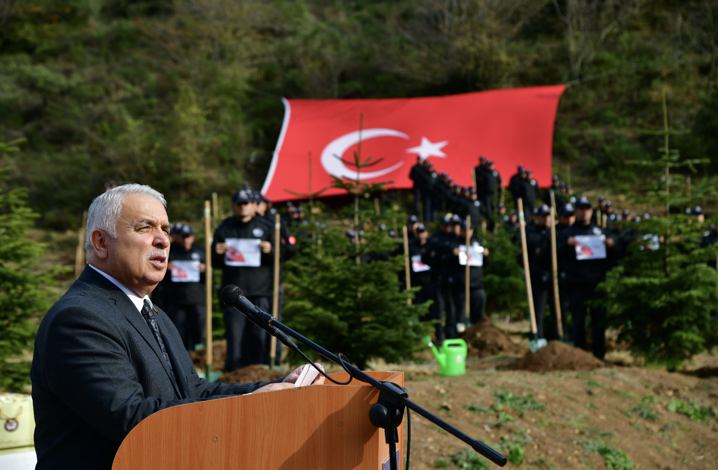 Trabzon Valisi Aziz Yıldırım, Terörle Mücadele Daire Başkanlığı, Orman Bakanlığı, Orman Genel Müdürlüğü koordinesinde ve İl Emniyet Müdürlüğü organizasyonunda düzenlenen “Şehitlerimiz İçin Her Bir Fidan, Geleceğimiz İçin Bir Nefes” temalı fidan dikim programına katıldı.