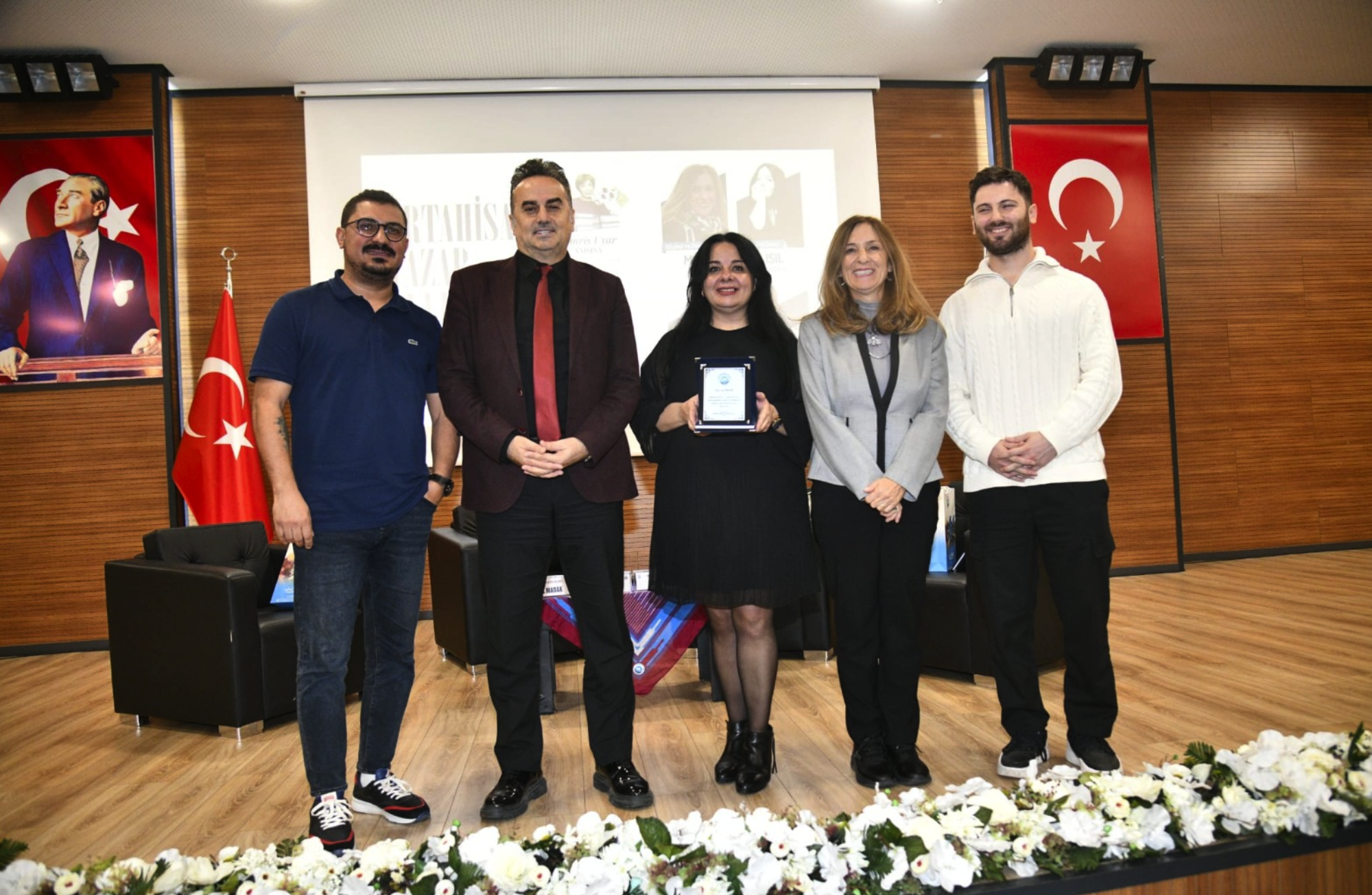 Söyleşinin ardından Ortahisar Belediye Meclisi Üyeleri Olgun Önder ve Birsen Karaahmet, Oğhan ve Özkarabekir’e teşekkür ederek plaket ve hediye takdim etti.