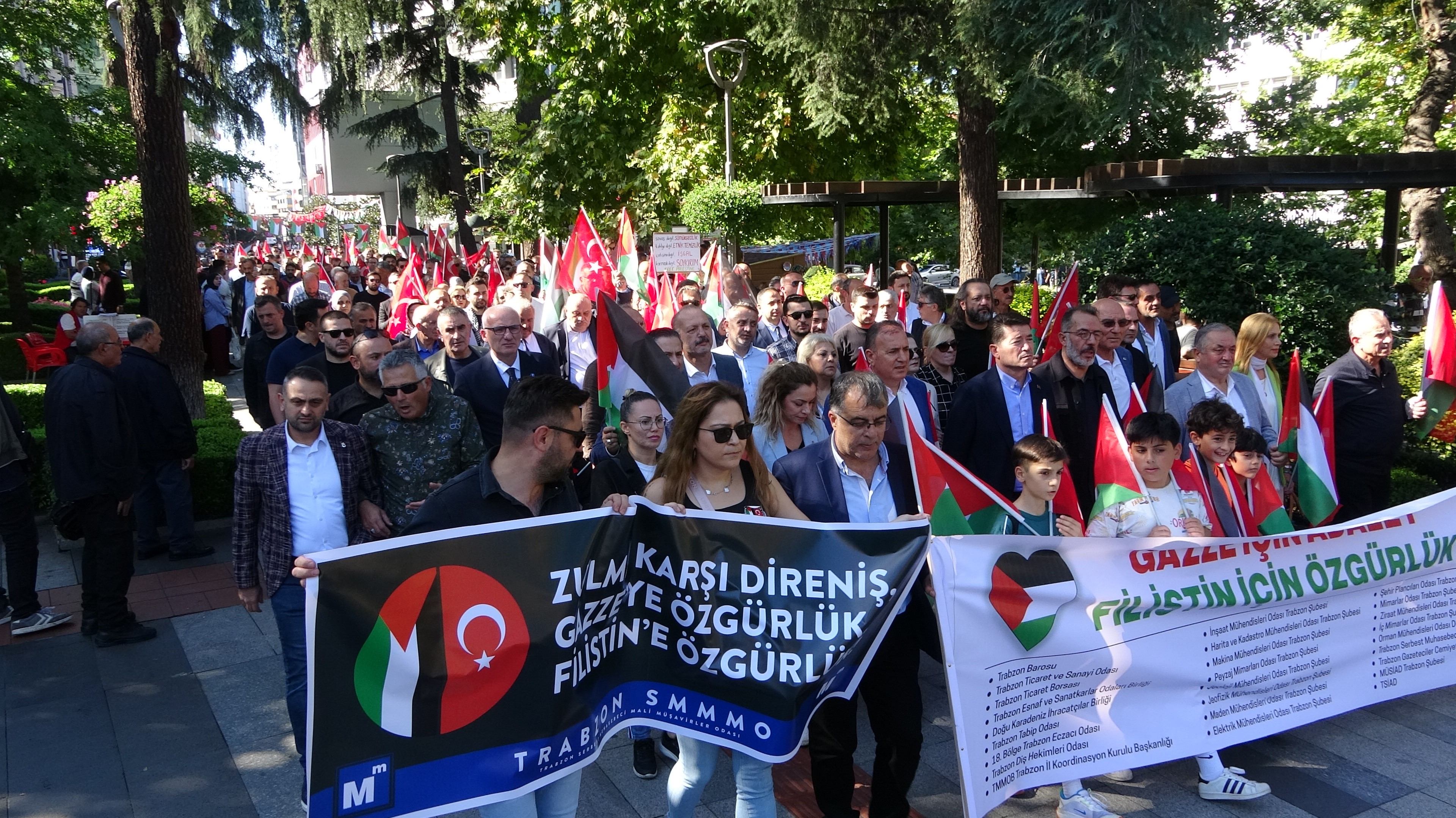 Trabzon’da "Gazze İçin Adalet, Filistin İçin Özgürlük" yürüyüşü düzenlendi. Kahramanmaraş Caddesi’nden başlayan yürüyüş, Atatürk Alanı’nda sona erdi. Katılımcılar, Filistin bayrakları taşıyarak ve "Gazze için adalet, Filistin için özgürlük" yazılı pankart açarak destek mesajı verdi.