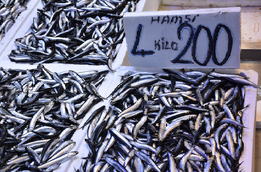 Trabzon'da balıkçı tezgahlarını süsleyen hamsinin kilogramı 50 liradan satışa sunuluyor.