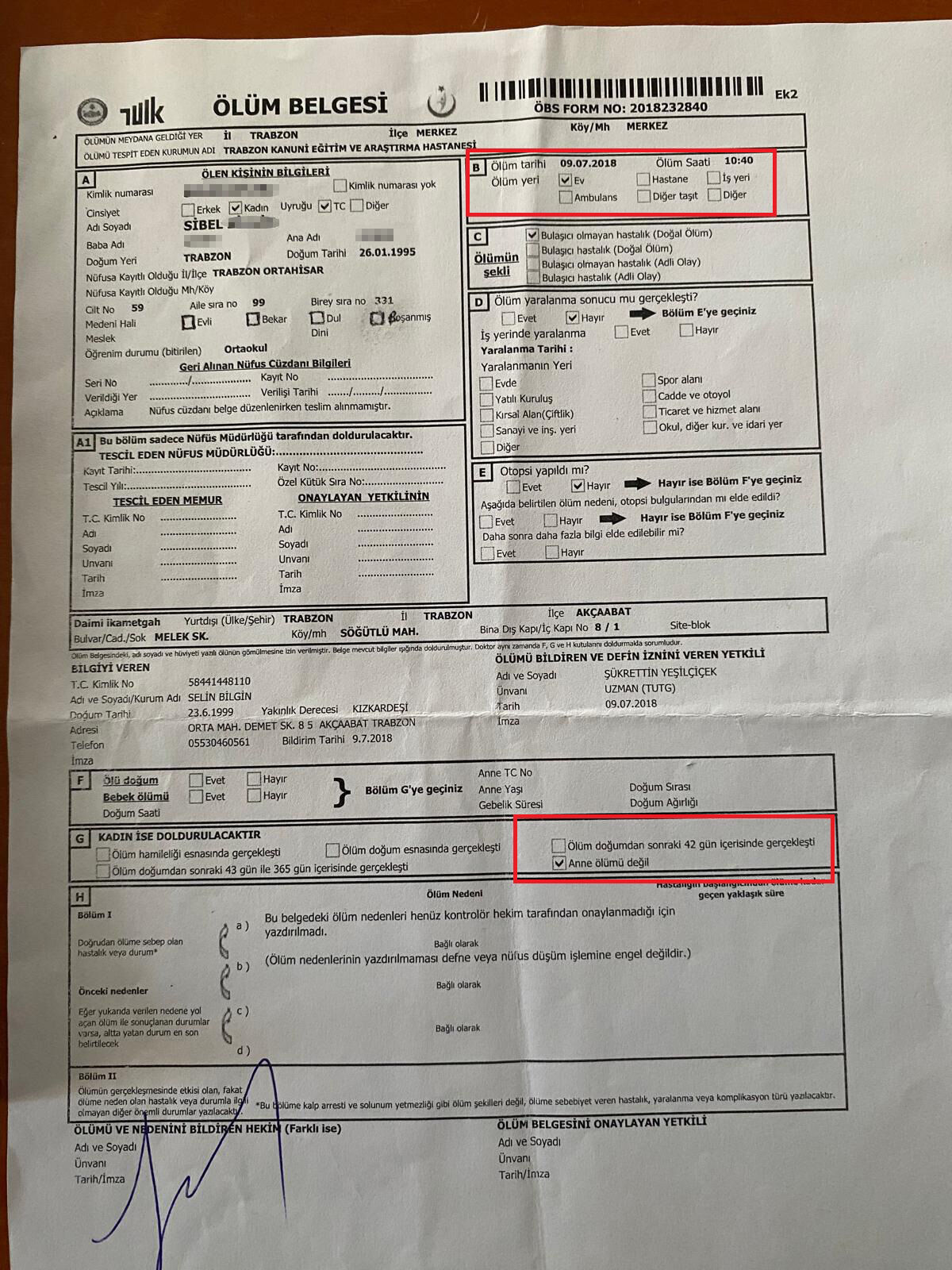 Akçaabat ilçesinde bir işletmede aşçılık yapan 3 çocuk annesi Sibel Kuştil, sağlık raporu almak için bir hafta önce aile hekimine başvurdu. Aile hekimliği görevlileri tarafından yapılan kontrolde, Kuştil’in sağlık sistemi kayıtlarında 7 yıl önce ‘ölü’ olarak göründüğünü belirledi. Bunun üzerine şaşkınlık yaşayan Kuştil, İl Sağlık Müdürlüğü’ne giderek durumu öğrenmek istedi. Burada da kendisine 2018 yılında bir devlet hastanesi tarafından ölüm kaydının oluşturulduğu ve bu nedenle sağlık sisteminde 7 yıldır ‘ölü’ göründüğü söylendi. Nüfus müdürlüğünde ‘yaşıyor’ olarak kayıtlarda yer alan Kuştil, 7 yıl önce ölü bebek dünyaya getirmesiyle hastane kayıtlarında hata yapılmış olabileceğini düşünüyor. Aşı olamamanın yanı sıra ilaç yazdırma, hastane randevusu ve E-Nabız’a giriş yapmakta güçlük çeken Kuştil, başvuruda bulunarak, yaşadığını kanıtlamaya çalışıyor.