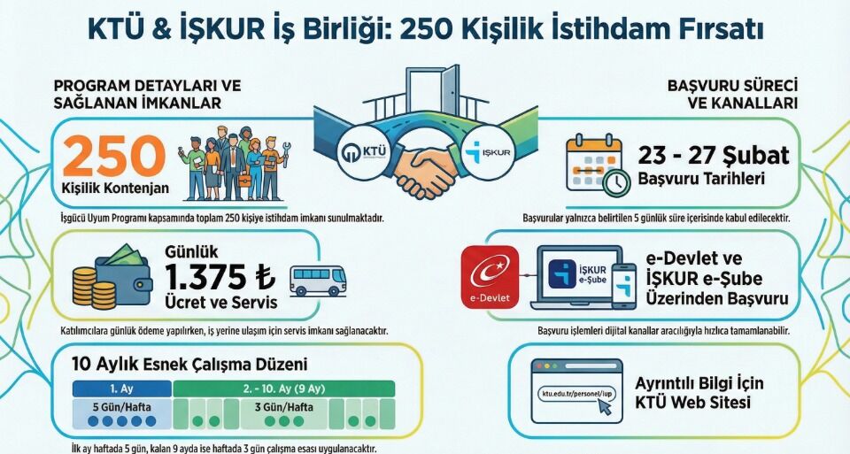 Üniversite ile Türkiye İş Kurumu (İŞKUR) iş birliğinde hayata geçirilen İşgücü Uyum Programı, 250 kişiye iş imkânı sağlayacak. Program, hem iş arayanlara gelir desteği sunmayı hem de çalışma hayatına uyumu güçlendirmeyi amaçlıyor.