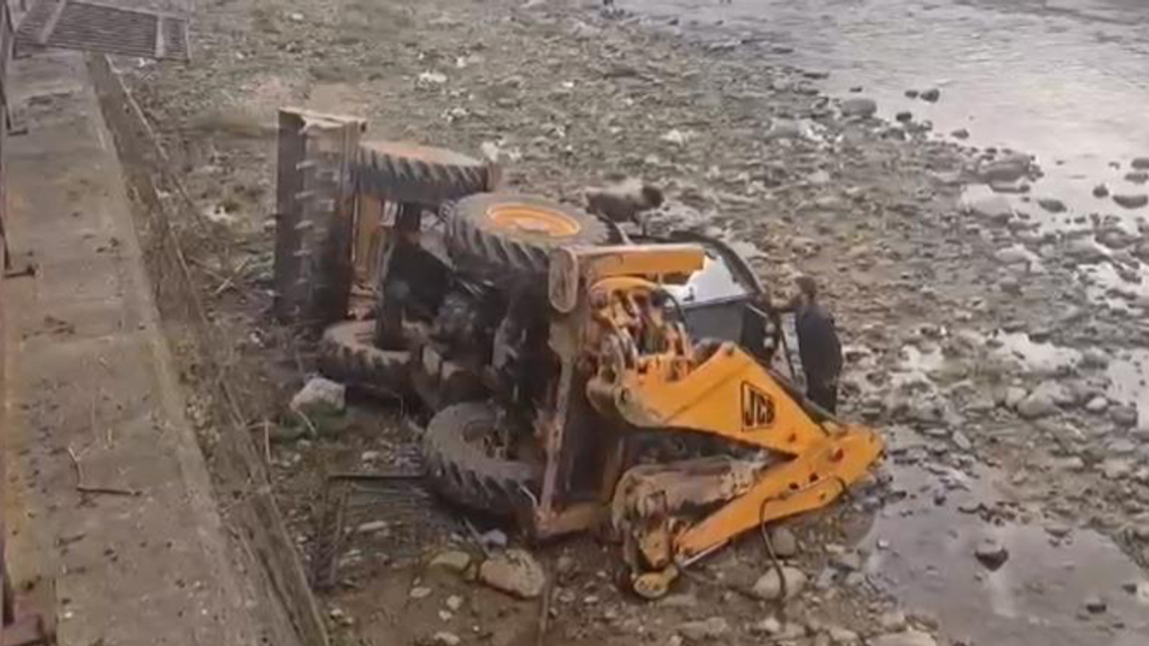 Trabzon’un Sürmene ilçesinde belediyeye ait iş makinesinin dereye düşmesi sonucu sürücü yaralandı.