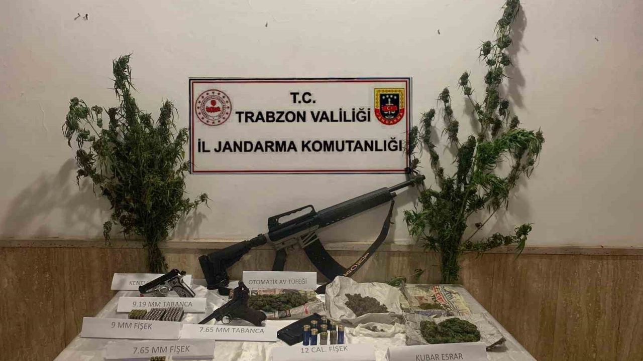 Alınan bilgiye göre, uyuşturucu kaçakçılarına göz açtırmayan Jandarma Narkotik Timleri ve Jandarma Dedektifleri (JASAT) Ortahisar ilçesi Kozluca mahallesinde adli makamlarca hakkında kasten yaralama suçundan yakalama kararı bulunan M.A. (62) isimli şahısın saklandığı değerlendirilen evi takibe aldı. Şahısın yapılan takibinde evinde uyuşturucu madde ve silah bulundurduğu tespit edildi. M.A.’nın gözaltına alındığı operasyonda 818,6 gram kubar esrar, 2 adet ruhsatsız tabanca, 1 adet ruhsatsız av tüfeği ile 146 adet çeşitli çaplarda fişek ele geçirildi. Olayla ilgili inceleme sürüyor.