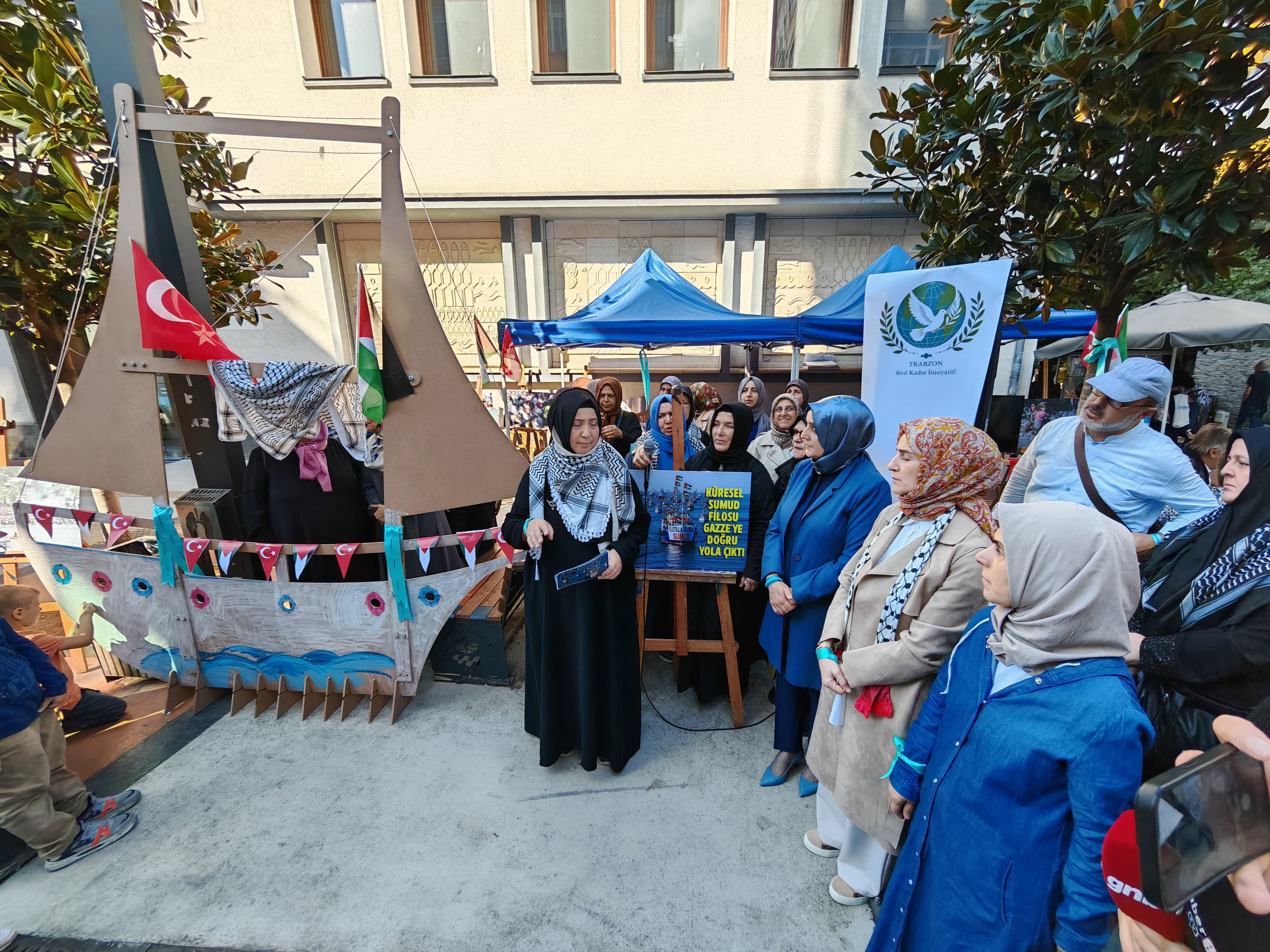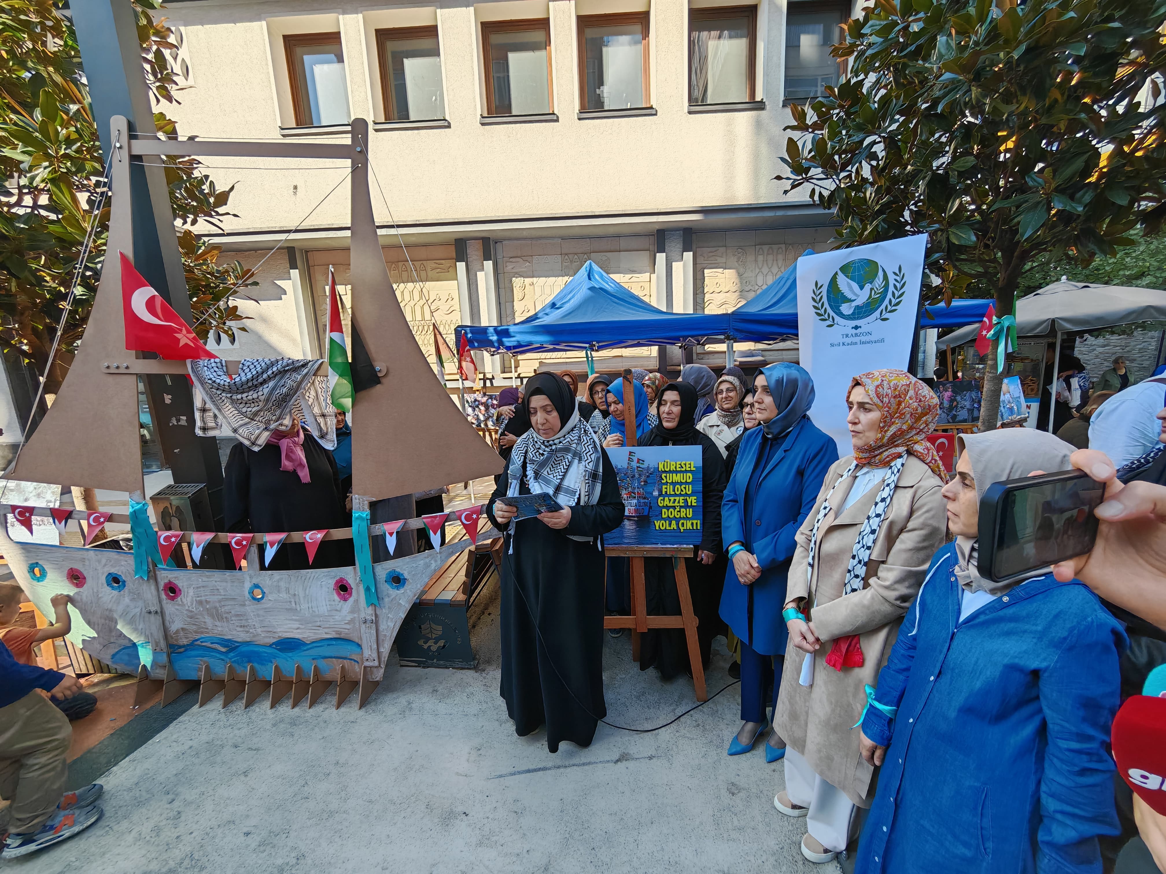 Trabzon Sivil Kadın İnisiyatifi, Gazze’de yaşanan insani krize dikkat çekmek ve SUMUD filosuna destek vermek amacıyla “Gazze’ye Umud, Küresel Sumud Nöbeti” başlatacaklarını açıkladı. Düzenlenen basın açıklamasında Trabzon Valisi Aziz Yıldırım'ın eşi Güllühan Yıldırım, AK Parti Trabzon İl Başkanı Sezgin Mumcu'nun eşi Gülderen Mumcu ve çok sayıda STK temsilcisi katıldı.