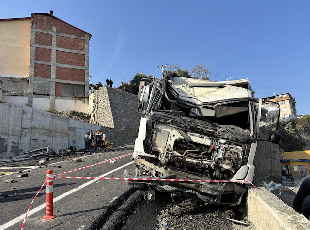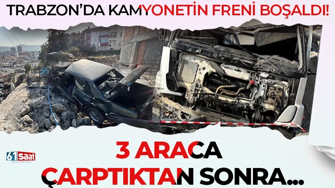 Trabzon’un Ortahisar ilçesinde belediyeye ait bir kamyonet, el freninin boşalması sonucu yokuş aşağı kayarak 3 araca çarptıktan sonra yaklaşık 20 metrelik duvardan yola düştü.