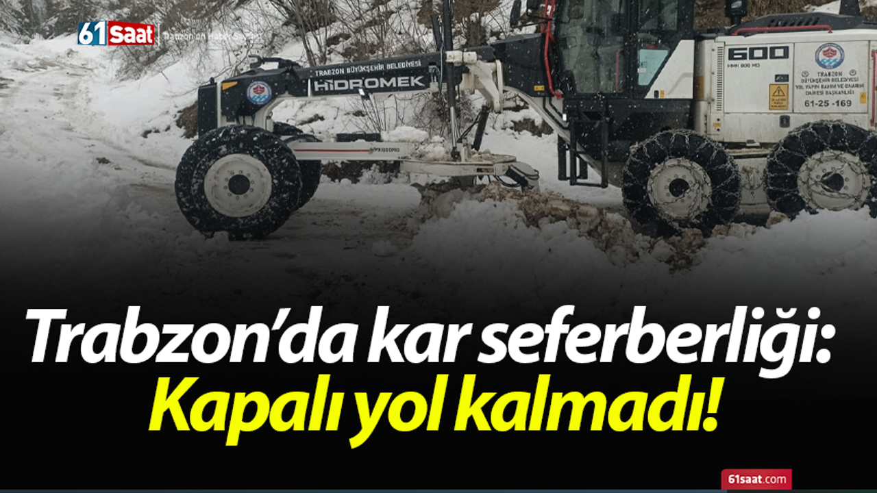 Trabzon Büyükşehir Belediyesi Yol Yapım Bakım ve Onarım Dairesi Başkanlığı ekipleri tarafından sürdürülen karla mücadele çalışmaları kapsamında ana arterler başta olmak üzere mahalle yolları güvenli şekilde ulaşıma açıldı. Sadece Çaykara ilçesinde kış aylarında ikamet bulunmayan üç mahalle yoluna, çığ riski nedeniyle müdahale edilmediği bildirildi.