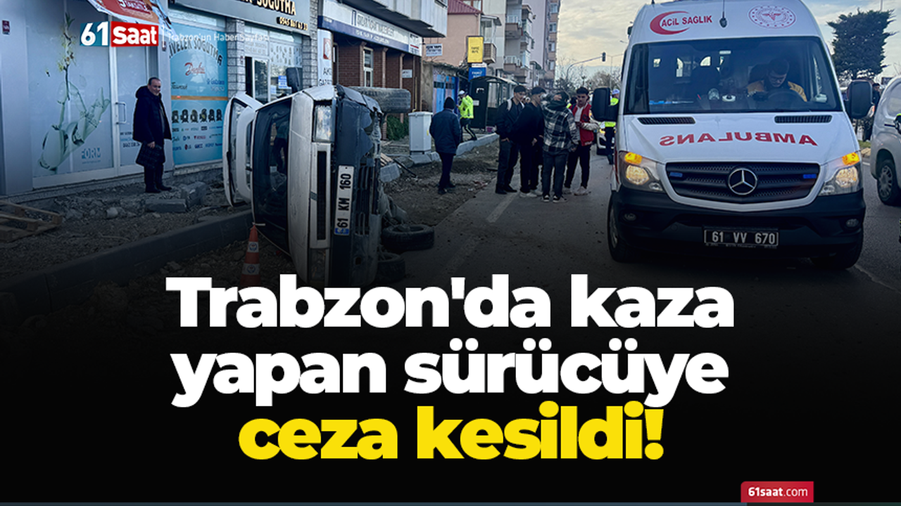 Trabzon’un Ortahisar ilçesinde sürücüsünün kontrolünden çıkan otomobilin kaldırım taşına çarparak yan yattığı kazada sürücü İ.K.A.’ya, 'trafiği aksatacak veya tehlikeye sokacak şekilde ardı ardına birden fazla şerit değiştirme' suçundan 11 bin 629 lira ceza uyguladı.