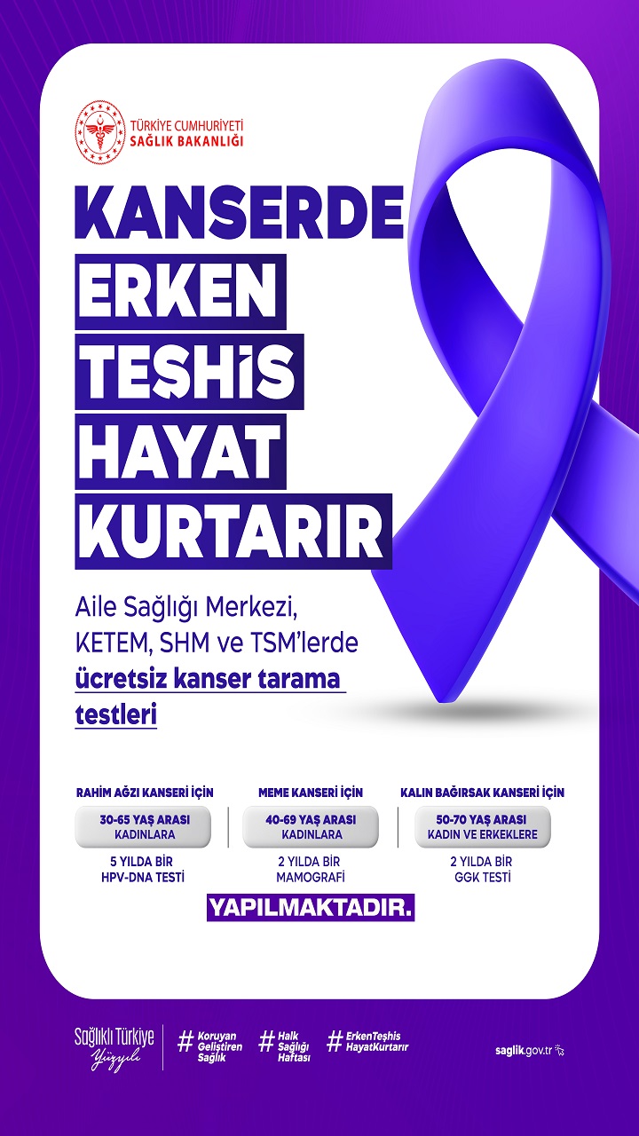 Meme, rahim ağzı ve kolon kanserlerine yönelik ücretsiz taramalar; KETEM, SHM, TSM, ASM’ler ve mobil tarama araçlarıyla vatandaşlara sunuluyor. Taramalar sonucu elde edilen veriler, Trabzon Bölge HPV Laboratuvarı’nda değerlendiriliyor ve sonuçlar en geç 10 gün içinde ilgililere iletiliyor.