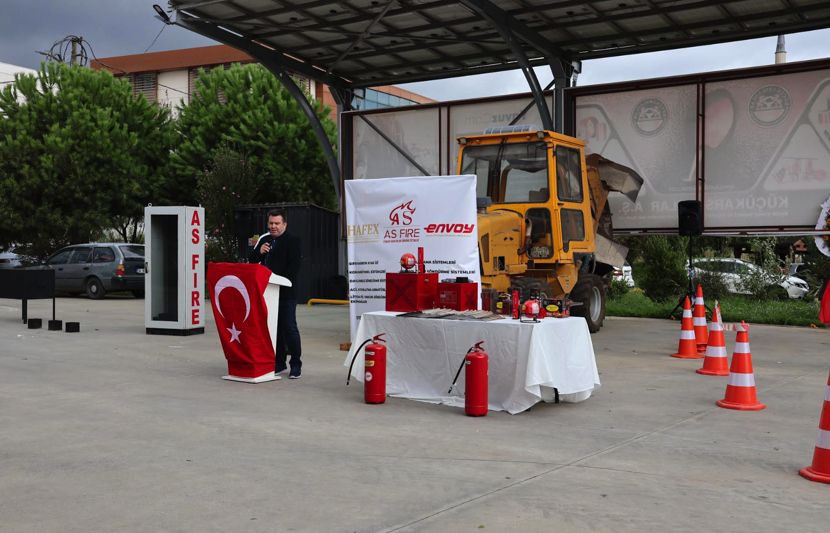 Trabzon Arsin OSB Yönetim Kurulu Başkanlığı ve As Fire Güvenlik firması iş birliğiyle düzenlenen “Yeni Teknoloji Yangın Sistemleri ve Lityum Pil Yangınlarına Yönelik Çözümler” konulu demo sunumu Trabzon Arsin OSB Otopark Alanı’nda gerçekleştirildi.