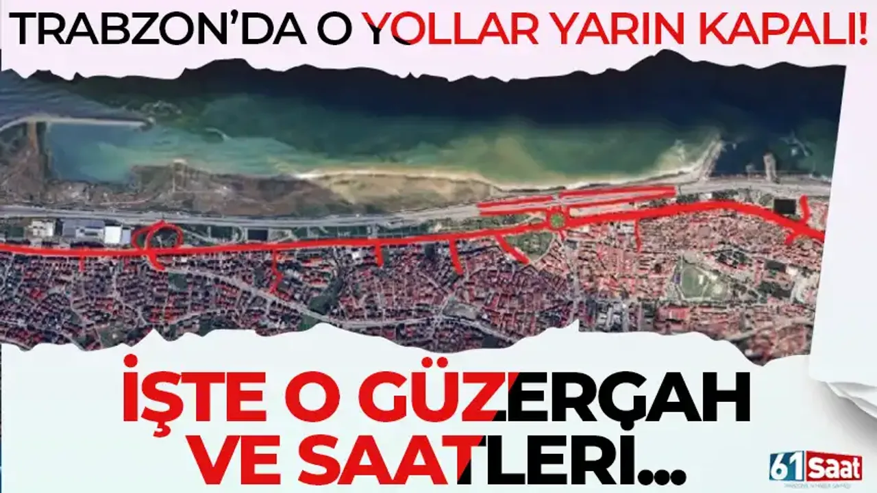 21 kilometrelik Uluslararası Trabzon Yarı Maratonu, 10 kilometrelik Çeyrek Maraton, 3.7 kilometrelik Halk Koşusu ve 1 kilometrelik Çocuk Koşusu olmak üzere dört farklı kategoride koşulacak maraton nedeniyle yarın sabah 05.00 ile 14.00 saatleri arasında, Akçaabat istikametinde Ganita, Beşirli-Ganita, Atatürk Köşkü, Ayasofya ve Merkez Bankası yan yol girişleri trafiğe kapalı olacak. Rize istikametinde ise Trabzon İtfaiyesi, Ganita ve Atatürk Köşkü yan yol girişleri kapatılacak.