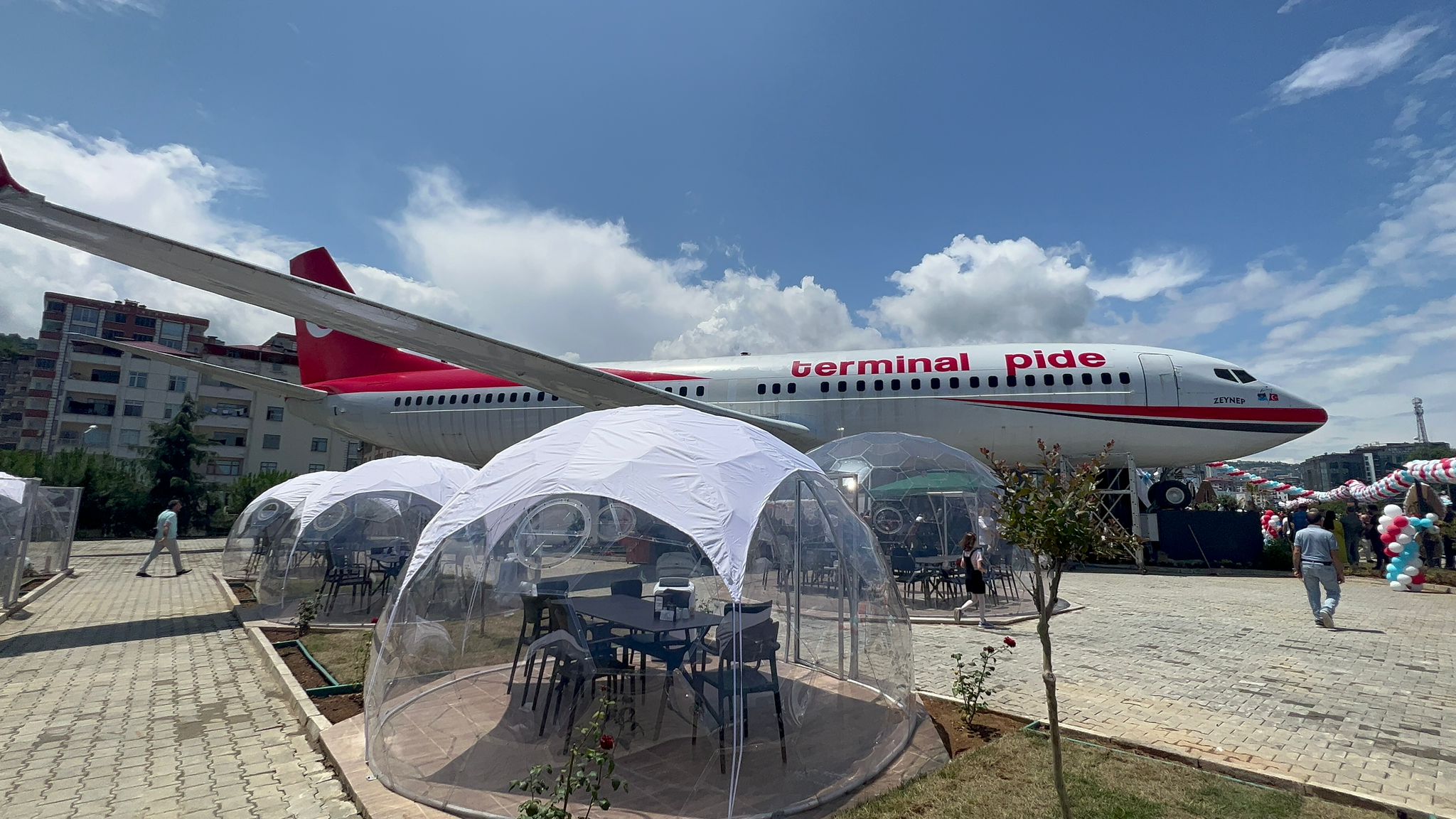 Yomra İlçesi girişinde Pide Salonuna çevrilen uçağın açılışına Trabzon Valisi İsmail Ustaoğlu, ile belediye başkanları, ilçe başkanları ve bir çok STK Temsilcisi katıldı.