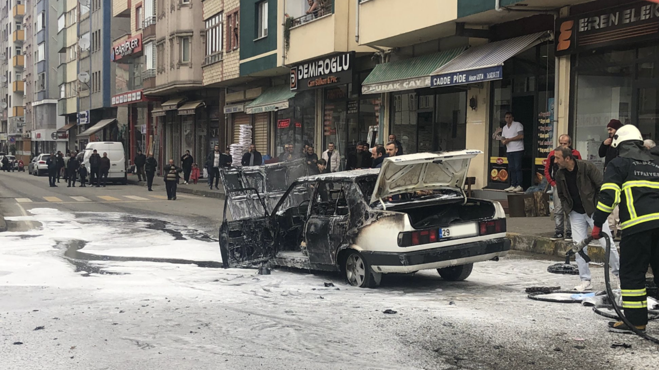 Trabzon'un Vakfıkebir ilçesinde Gümüşhane plakalı araç seyir halindeyken alev alarak kullanılamaz hale geldi.