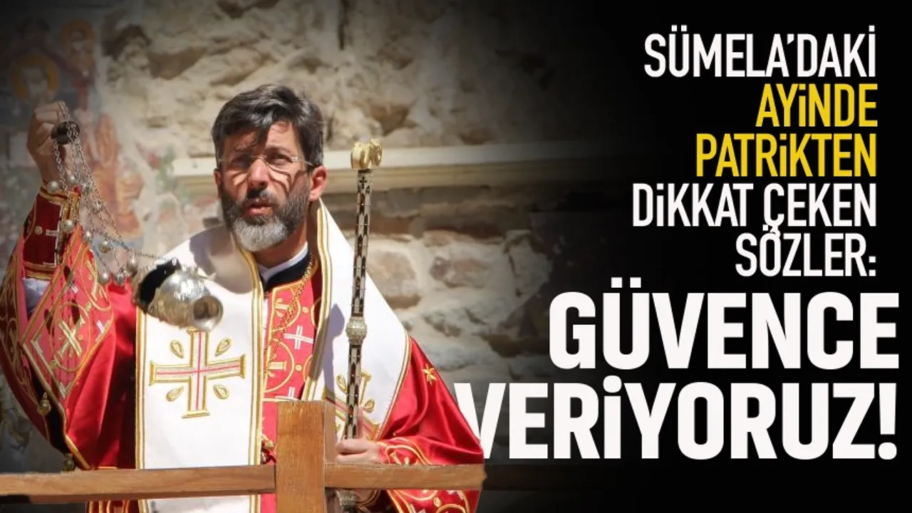 Yüce Allah'tan, Kutsal Meryem Ana'nın şefaatleriyle, Cumhurbaşkanına ve tüm çalışma arkadaşlarına barış, sağlık ve başarı vermesini; ülkenin refahı için olan gayretlerini güçlendirmesini diliyoruz. Yüce Allah'tan tüm kalbimizle diliyoruz ki, Meryem Ana'nın şefaatleriyle, herkese sağlık, barış, refah ihsan etsin ve bizleri her yıl buraya, Sümela'ya, atalarımızın tarihine ve inancına bağımızı yenilemek üzere, derin bir duyguyla ve şükranla gelmeye layık kılsın" ifadelerini kullandı.
