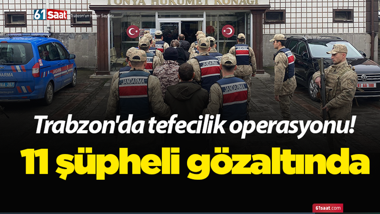 Trabzon’un Tonya ilçesinde tefecilik faaliyetlerine yönelik düzenlenen operasyonda 11 şüpheli yakalanarak gözaltına alındı. Trabzon İl Jandarma Komutanlığı’na bağlı KOM (Kaçakçılık ve Organize Suçlarla Mücadele) Şube Müdürlüğü ve JASAT (Jandarma Suç Araştırma Timi) ekipleri, Tonya Cumhuriyet Başsavcılığı koordinesinde uzun süredir yürüttüğü teknik ve fiziki takip sonucunda gerçekleştirilen operasyonda önemli bulgulara ulaşıldı.