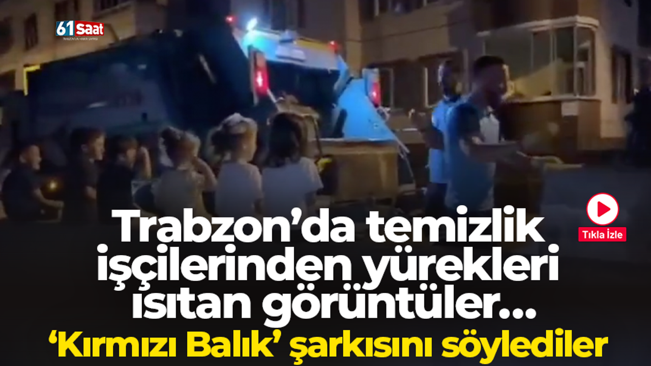 Trabzon’da bir mahallede akşam saatlerinde görev yapan Ortahisar Belediyesi’ne bağlı temizlik işçileri, yol kenarında bekleyen çocuklarla birlikte “Kırmızı Balık” şarkısını söyledi. Daha sonra çocuklara çikolata ikram eden temizlik işçilerinin bu samimi davranışı yürekleri ısıttı.