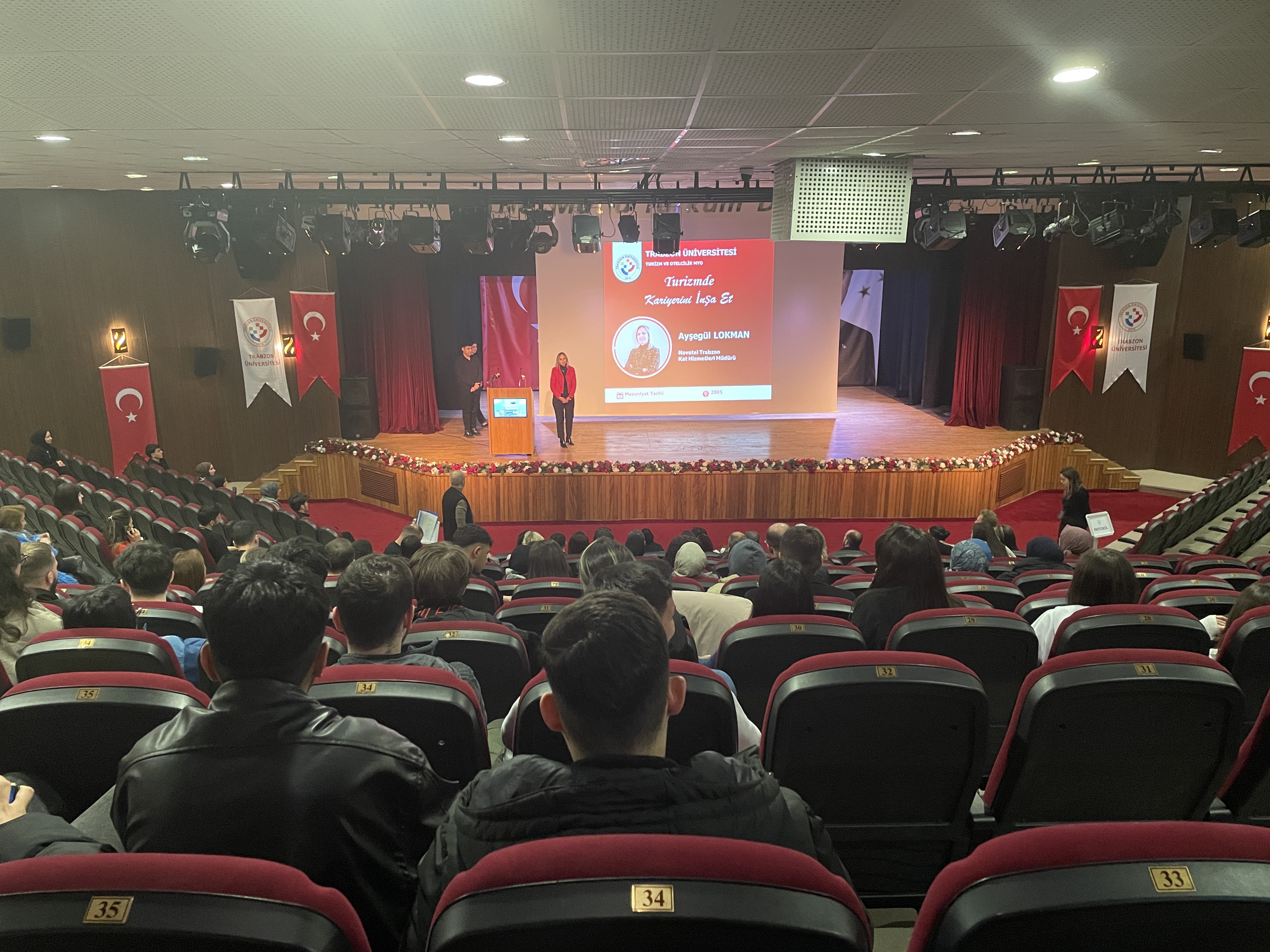 MYO Müdürü Prof. Dr. Melike Kurtaran Çelik, yaptığı konuşmada, turizmin, ekonomiden kültüre uzanan geniş bir yelpaze olduğunu dile getirerek, milyonlarca insanı hareket ettiren, ülkeleri birbirine yaklaştıran bir güç olduğunu belirtti.