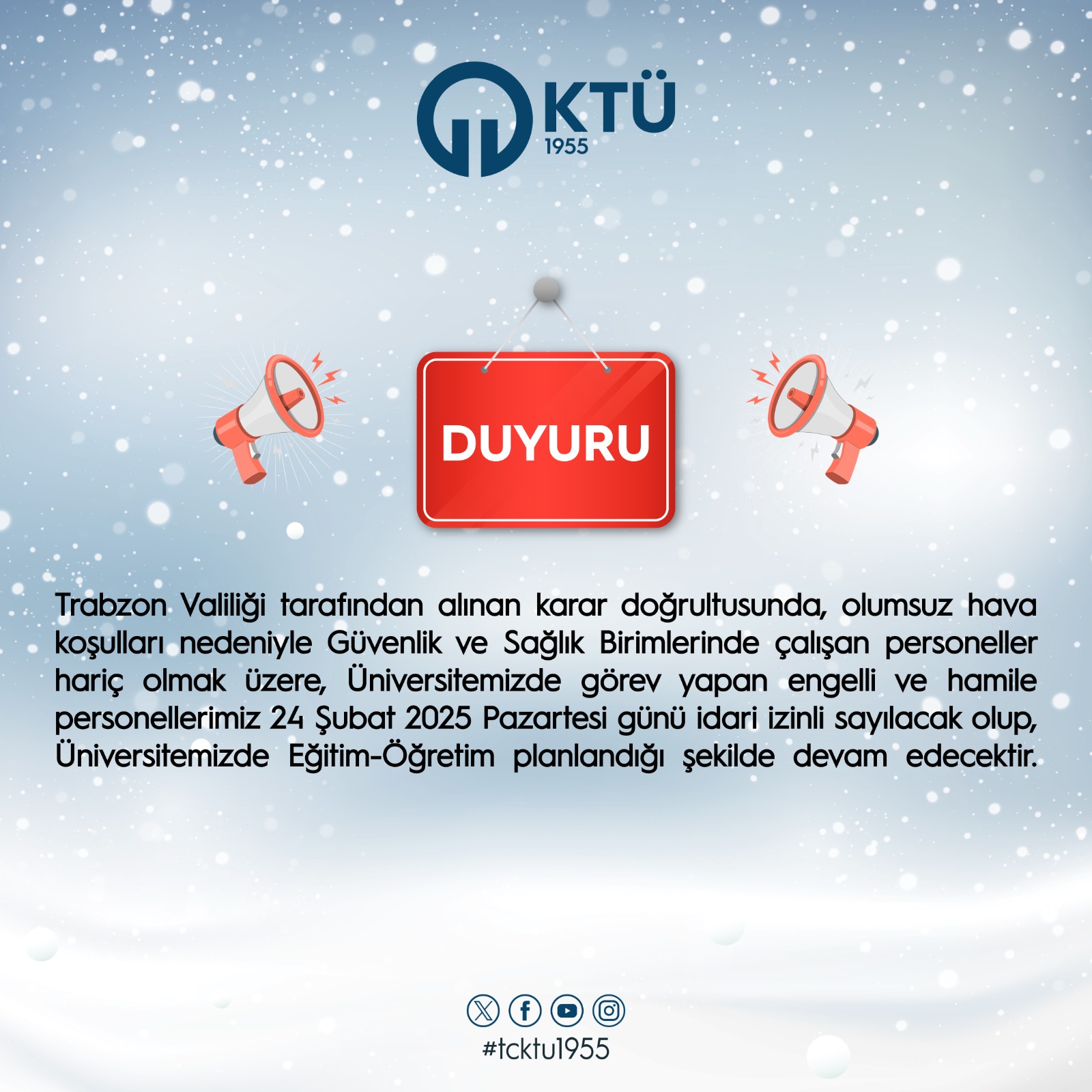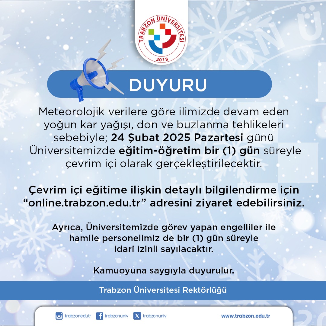 Trabzon Üniversitesi de yaptığı açıklamayla eğitime bir gün ara verildiğini duyurdu!