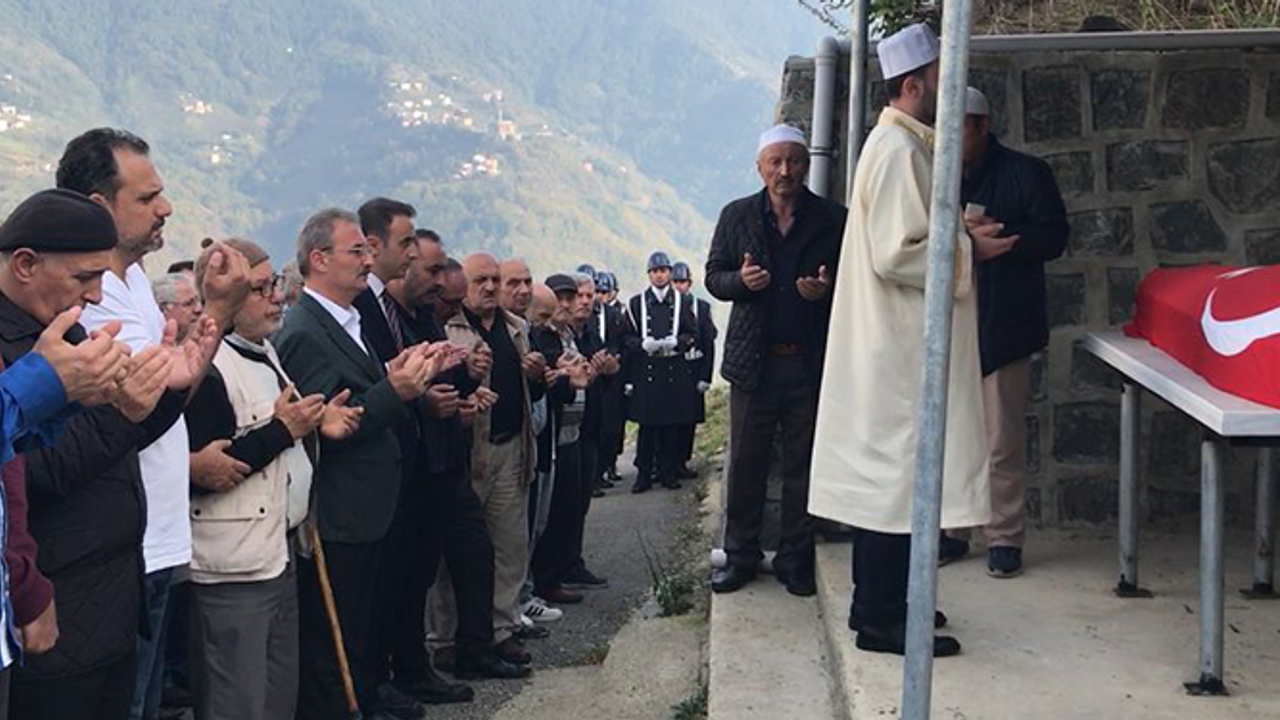 Kara'nın Türk bayrağına sarılı naaşı, askerlerin omuzlarında Şalpazarı ilçesindeki Üzümözü Mahallesi Mezarlık Boğazı Camisi'ne getirildi.