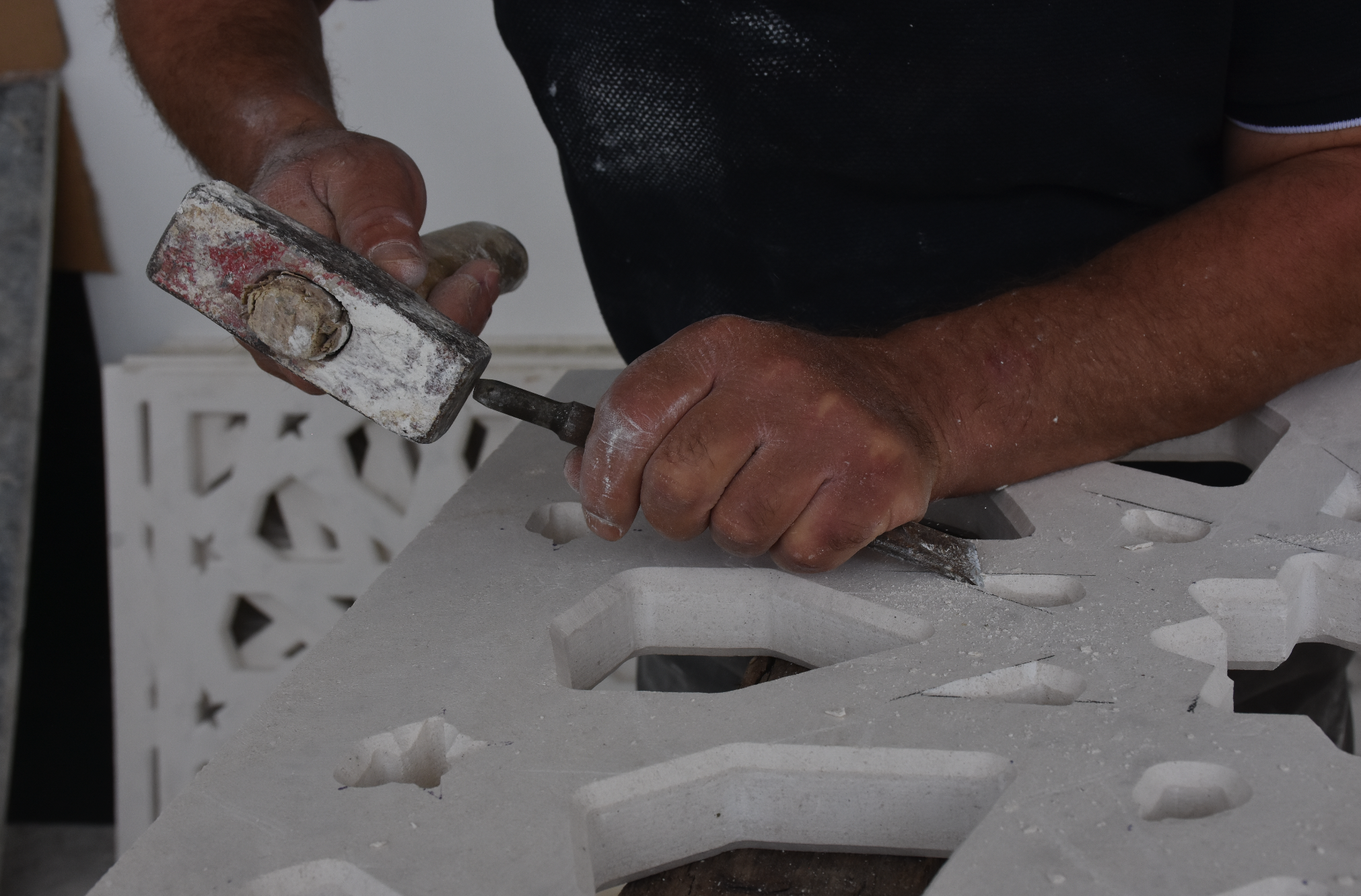 Mimar Sinan'ın çalışmalarını örnek alan ve İstanbul'daki eserlerini fotoğraflayan Dertlioğlu, çoğunlukla kullandığı limra taşını 43 yıldır büyük özveriyle işleyerek şekillendiriyor.