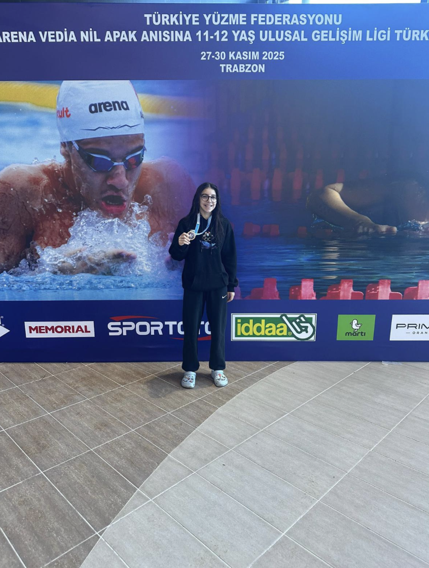12 yaş kategorisi 50 metre kurbağalama yarışında mücadele eden Trabzon Yeşilova Spor Kulübü sporcusu Bade Şener, Türkiye ikincisi olarak büyük bir başarıya imza attı.