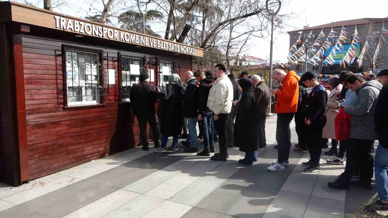 Trendyol Süper Lig’in 30. haftasında Trabzonspor, 17 Mart Pazar günü saat 20.30’da evinde Fenerbahçe ile karşılaşacak. Bu önemli karşılaşmanın biletleri bugün saat 11.00 itibarıyla satışa çıktı. Bordo-mavili takım taraftarları, bilet gişeleri önünde sıraya girip bu önemli maçta yer almak için beklemeye koyuldular. Trabzonspor - Fenerbahçe müsbakasının biletlerinin kısa süre içinde tükenmesi bekleniyor.