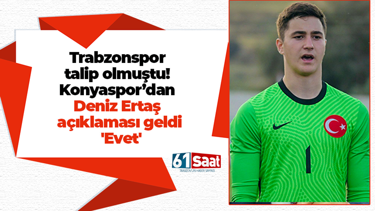 Konyaspor, kaleci Deniz Ertaş’ın Trabzonspor’a transferi konusunda resmi açıklamada bulundu. Kulübün Genel Sekreteri ve Basın Sözcüsü Cengiz Yönet imzasıyla yapılan duyuruda, Konyaspor Başkanı Ömer Atiker ile Trabzonspor Başkanı Ertuğrul Doğan arasında görüşme gerçekleştirildiği bildirildi.