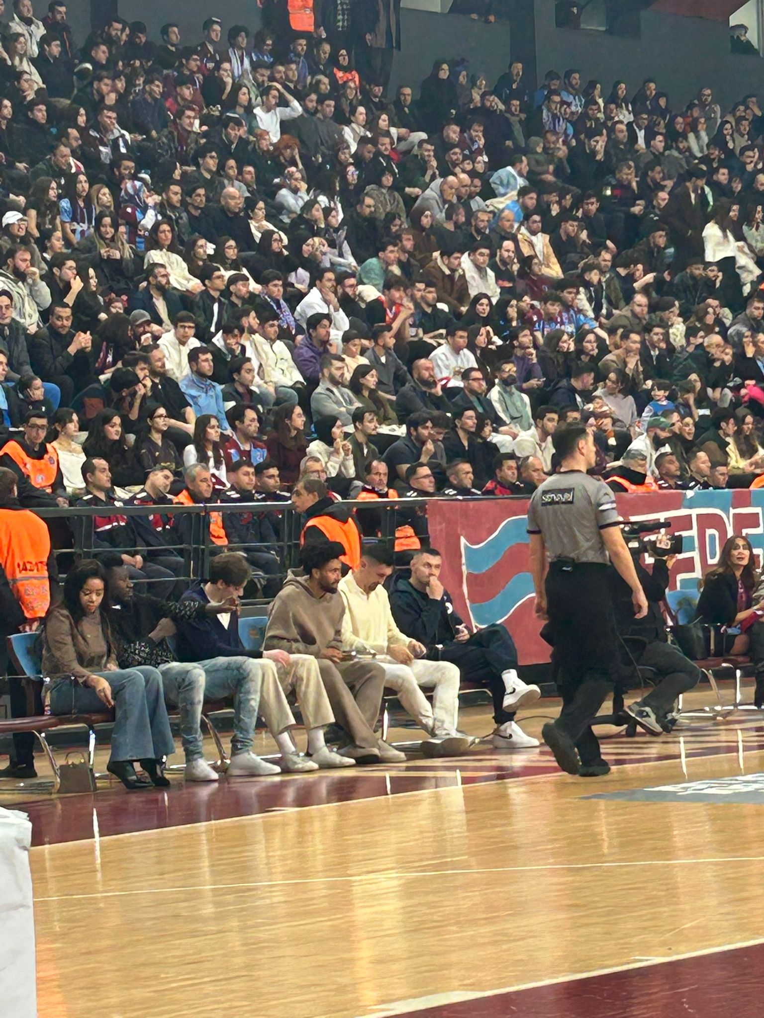 Hayri Gür Spor Salonu’nda gerçekleştirilen müsabakaya Trabzonsporlu oyuncular da desteğe geldi. Trabzonspor’un kaptanı Savic ve Zubkov, Onuralp Çevikkan, Folcarelli ve Andre Onana da sahada yerini aldı.