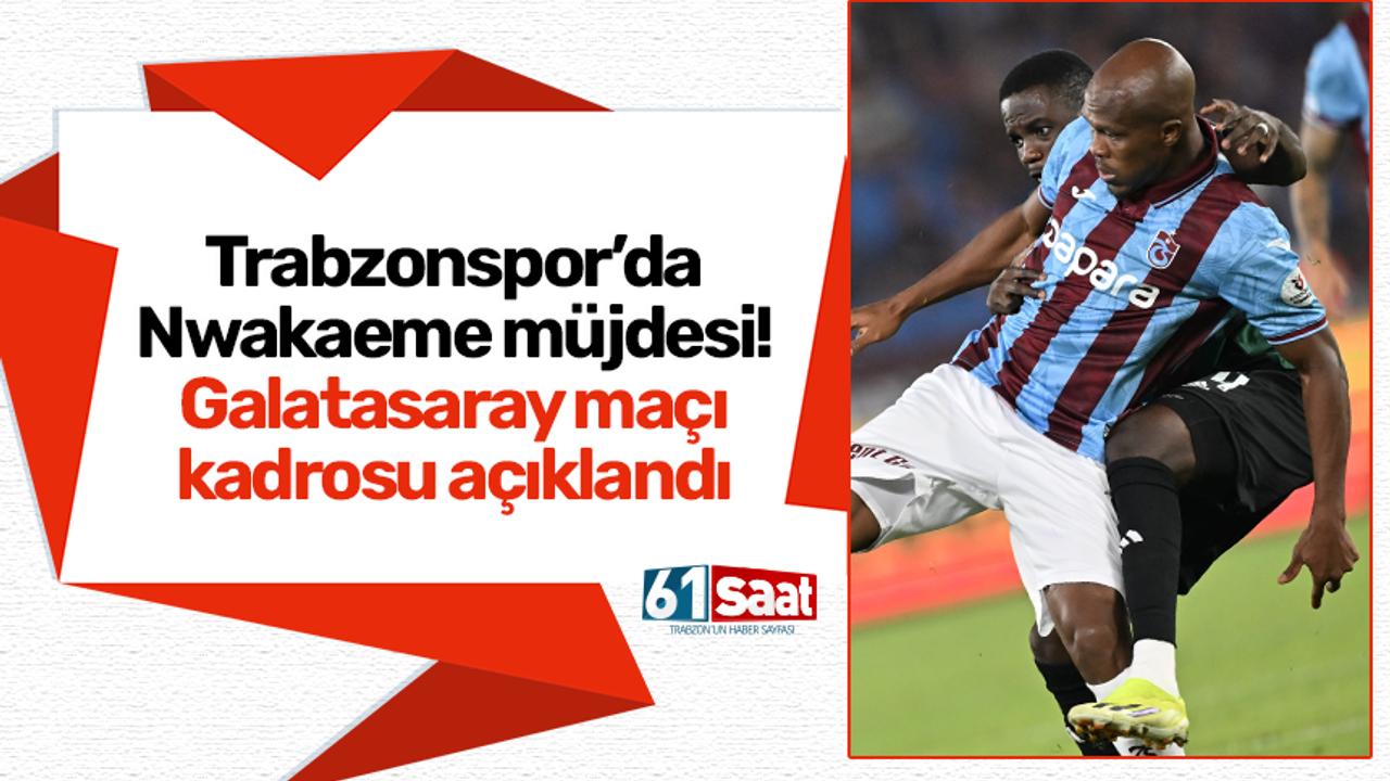 Trabzonspor'da Anthony Nwakaeme, Turkcell Süper Kupa Yarı Final’indeki Galatasaray maçının kadrosuna yer aldı. Trabzonspor'un Galatasaray maçı kafilesi şu şekilde oluştu: